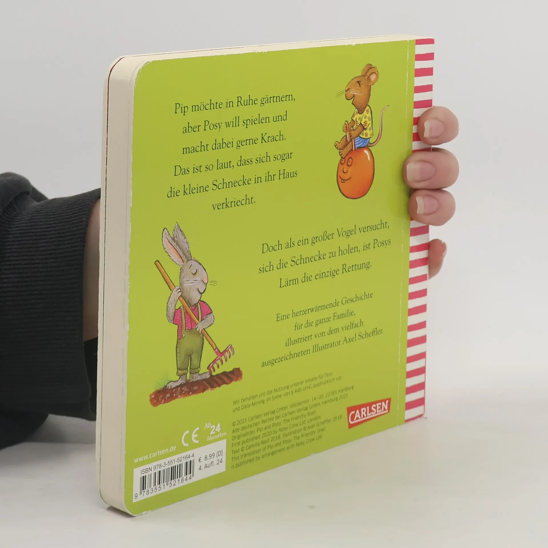 Ein Bilderbuch für Kinder ab 2 Jahren von Axel Scheffler Pip möchte in Ruhe gärtnern, aber Posy will spielen und macht dabei gerne Krach. Das ist so laut, dass sich sogar die kleine Schnecke in ihr Haus verkriecht. Doch als ein großer Vogel versucht, sich die Schnecke zu holen, ist Posys Lärm die einzige Rettung. Eine herzerwärmende Geschichte für die ganze Familie , illustriert von dem vielfach ausgezeichneten Illustrator Axel Scheffler.