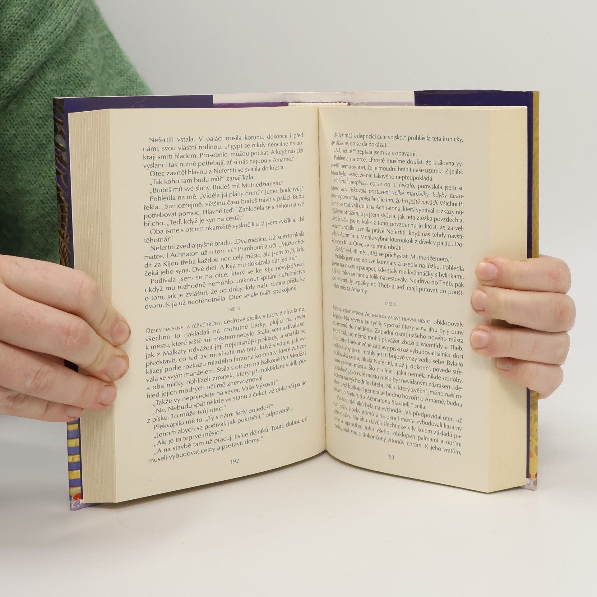 Kniha popisuje strhující život egyptské královny a později také faraonky Nefertiti. Knihou nás provází její nevlastní sestra Mutnežemet. Patnáctiletá Nefertiti přijde ke královskému dvoru jako nová žena následníka trůnu Amenhotepa 4. Velkou sokyní se mladé královně stane první faraonova žena Kija , s níž soupeří o postavení první manželky a vliv u dvora.Nefertiti získavá nad svým mužem stále větší moc , ale všechny její děti jsou dcery . Když Kija porodí syna ,korunního prince , ctižadostivá Nefertiti spřáda intriky , jak nástupnické uspořadání v Egyptě změnit . Ale s rostoucími ambicemi přibyvá i mocných nepřátel.......
