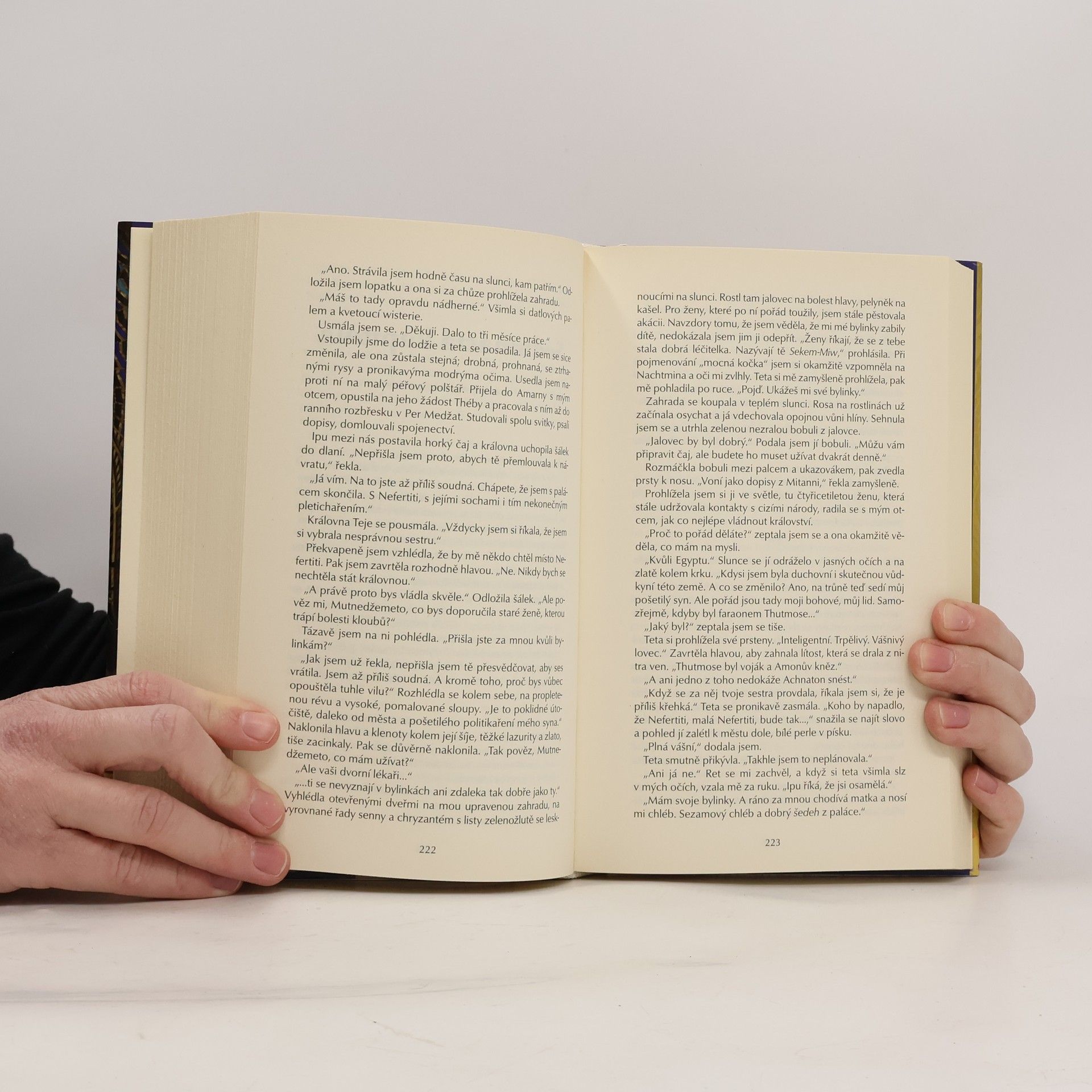 Kniha popisuje strhující život egyptské královny a později také faraonky Nefertiti. Knihou nás provází její nevlastní sestra Mutnežemet. Patnáctiletá Nefertiti přijde ke královskému dvoru jako nová žena následníka trůnu Amenhotepa 4. Velkou sokyní se mladé královně stane první faraonova žena Kija , s níž soupeří o postavení první manželky a vliv u dvora.Nefertiti získavá nad svým mužem stále větší moc , ale všechny její děti jsou dcery . Když Kija porodí syna ,korunního prince , ctižadostivá Nefertiti spřáda intriky , jak nástupnické uspořadání v Egyptě změnit . Ale s rostoucími ambicemi přibyvá i mocných nepřátel.......