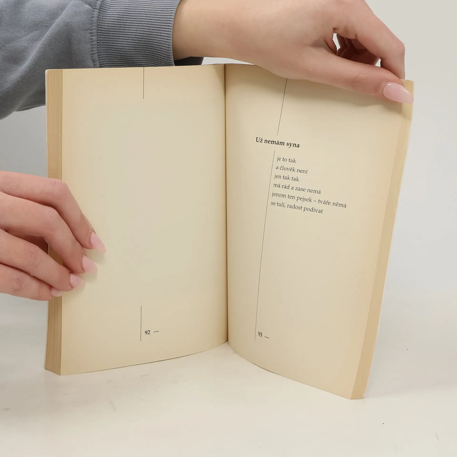 Autorka své verše načrtává lehce, jakoby se jí ani netýkaly. Nejpřesvědčivější je v okamžicích, kdy s velkou dávkou otevřenosti uvažuje nad kritickými okamžiky svého života. Autorka nezapře ani svou hereckou profesi, neboť v básních často zaznívají i ozvěny divadelního prostředí. Sbírka obsahuje drobné reflexe, jejichž základem je citový a vnitřní svět mladé žen.