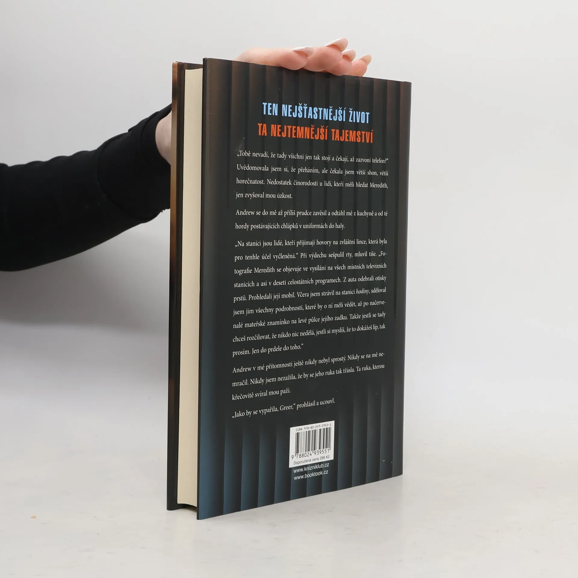 Když v luxusním lyžařském rezortu beze stopy zmizí Meredith, mladinká manželka bohatého podnikatele Andrewa Price, okamžitě se roztočí obvyklý kolotoč policejního pátrání a mediálního šílenství. Meredith neměla důvod k útěku, její život byl ztělesněním snů většiny mladých dívek: měla okouzlujícího manžela, s nímž se vášnivě milovali, krásný dům, vedla pohodlný život ženy v domácnosti. Navíc díky milé vstřícné povaze jako by ani neměla žádné nepřátele. Anebo bylo všechno jinak a pod povrchem zdánlivě dokonalého života se skrývaly temné proudy? Po odpovědích a hlavně po stopách své milované mladší sestry pátrá také Greer, která od dětství s nestabilní osamělou matkou byla Meredithinou největší oporou. V horském resortu postupně odkrývá příběh, který se silně liší od obrazu, jaký před veřejností vykreslil sestřin manžel. Jako by žádná z postav dramatu přesně neodpovídala roli, kterou hraje, včetně detektiva vyšetřujícího Meredithino zmizení. A když se Greer podaří odloupat svrchní vrstvy přetvářky, narazí na skutečnosti, které začnou ohrožovat i ji…