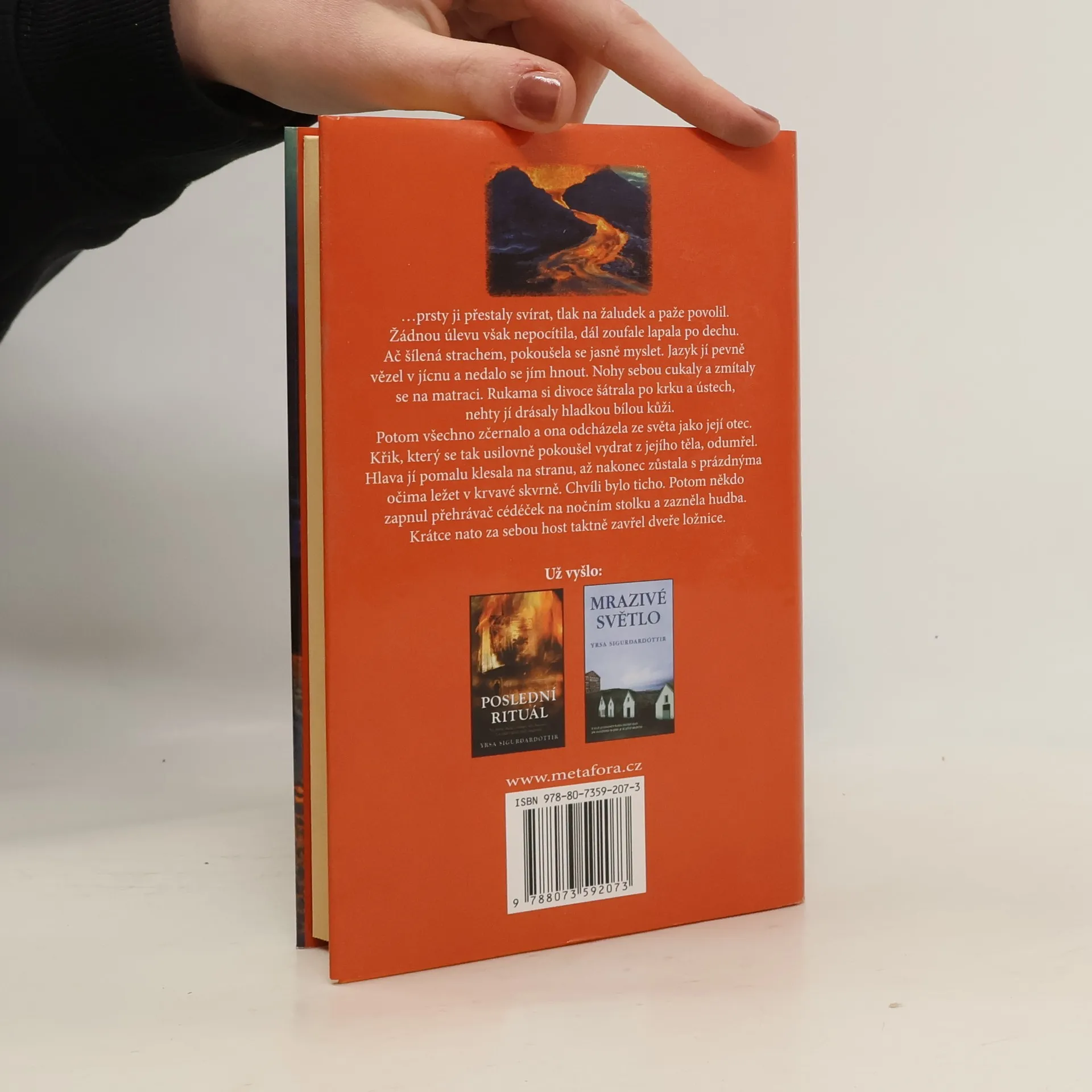 Tři těla, jedna uříznutá hlava a jedno strašlivé tajemství... Islandská advokátka Tóra přijíždí na Vestmannské ostrovy, aby pomohla svému mandantovi Markúsovi. Před více než třiceti lety skončil jeho rodný dům při erupci sopky pod vrstvou popela. Nyní jej archeologové chtějí vykopat, ale Markús protestuje. Hrůzný nález ve sklepě pak z banálního případu udělá vyšetřování několikanásobné vraždy! Bylo by možné, aby Markús ještě ve školním věku zavraždil čtyři muže a jednomu z nich nadto uřízl hlavu? A co s tím vším má společného jeho mladická láska Alda? Tóra se snaží zjistit, co se před lety odehrálo, ale nejdůležitější svědkyně právě zápasí se smrtí a další byla s největší pravděpodobností zavražděna. Dramata, tragédie a vášně dávno minulých let stále číhají pod povrchem a ty, kterých se týkají, nepouštějí ze svých sítí tak lehce.