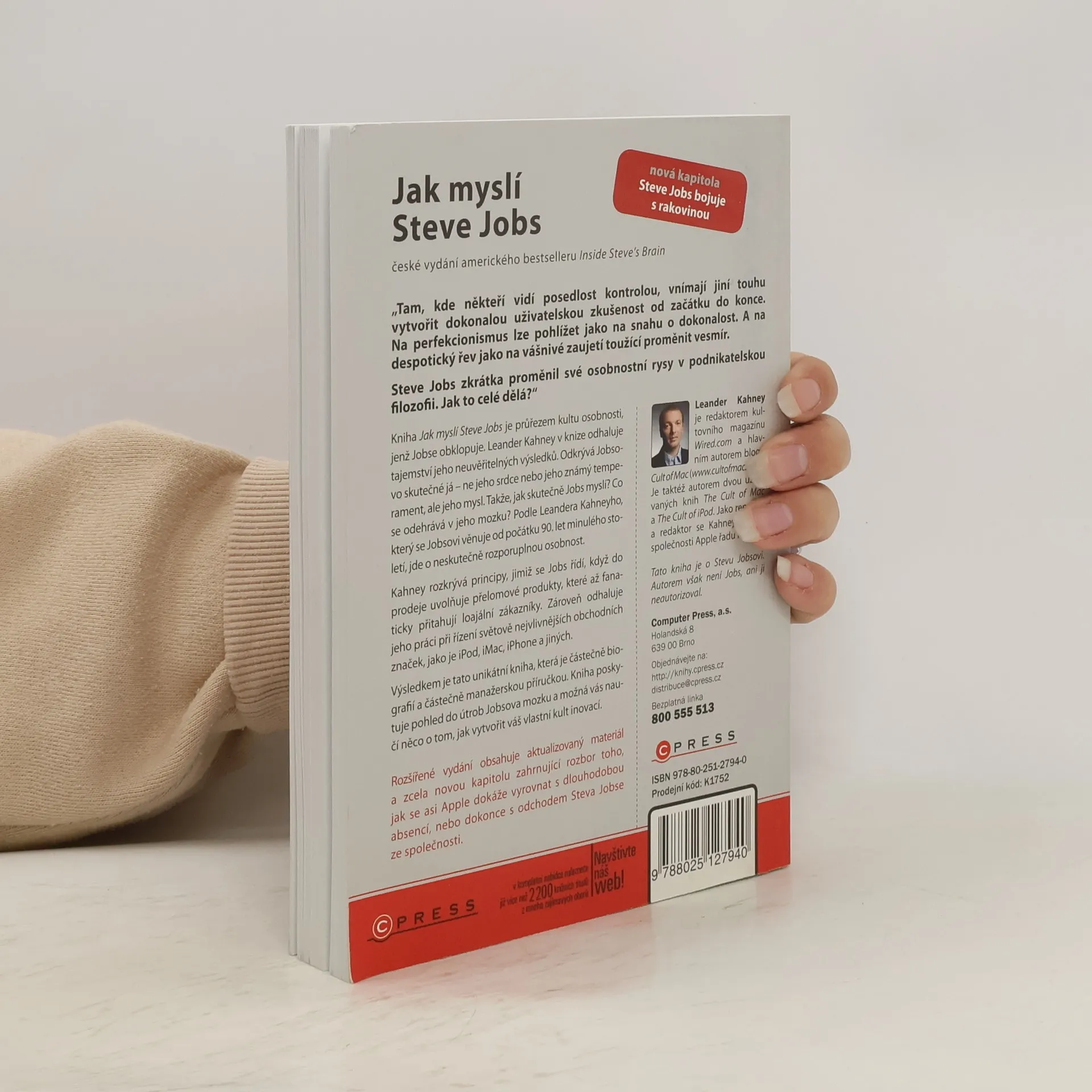 „Tam, kde někteří vidí posedlost kontrolou, vnímají jiní touhu vytvořit dokonalou uživatelskou zkušenost od začátku do konce. Na perfekcionismus lze pohlížet jako na snahu o dokonalost. A na despotický řev jako na vášnivé zaujetí toužící proměnit vesmír. Steve Jobs zkrátka proměnil své osobnostní rysy v podnikatelskou filozofii. Jak to celé dělá?“ Kniha Jak myslí Steve Jobs je průřezem kultu osobnosti, jenž Jobse obklopuje. Leander Kahney v knize odhaluje tajemství jeho neuvěřitelných výsledků.