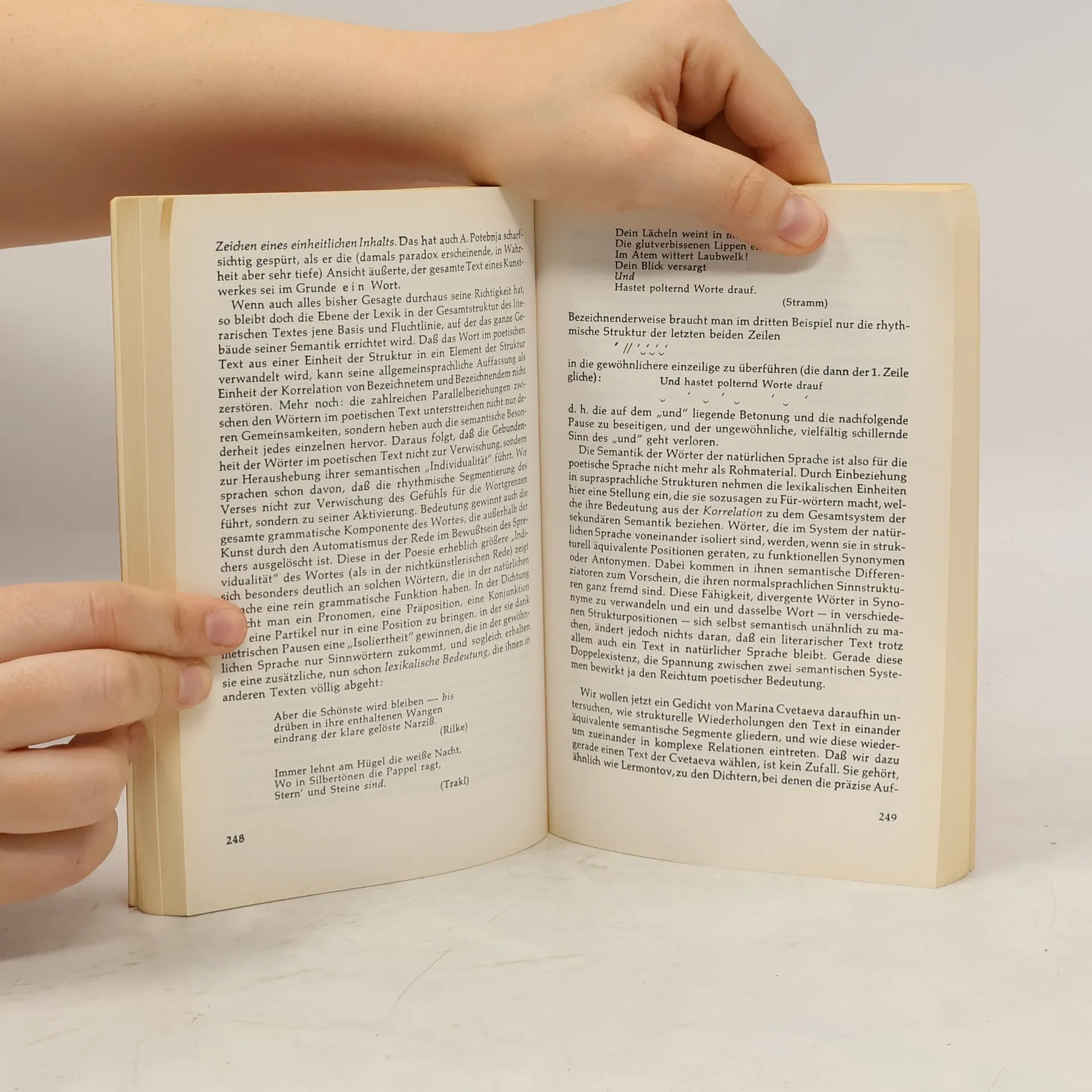 "Aus dem Inhalt: Die Kunst als Sprache - Das Problem der Bedeutung im künstlerischen Text - Der Begriff 'Text' - Text und System: Systemhaftes und Systemexternes im künstlerischen Text; Die Vielschichtigkeit des künstlerischen Textes - Die Konstruktionsprinzipien des Textes - Elemente und Ebenen der Paradigmatik im künstlerischen Text: Poesie und Prosa; Das Prinzip der Wiederholung; Das Problem der metrischen Ebene; Die Struktureigenschaften des Verses - Die syntagmatische Achse der Struktur - Die Komposition des Wortkunstwerks - Text und textexterne künstlerische Strukturen."