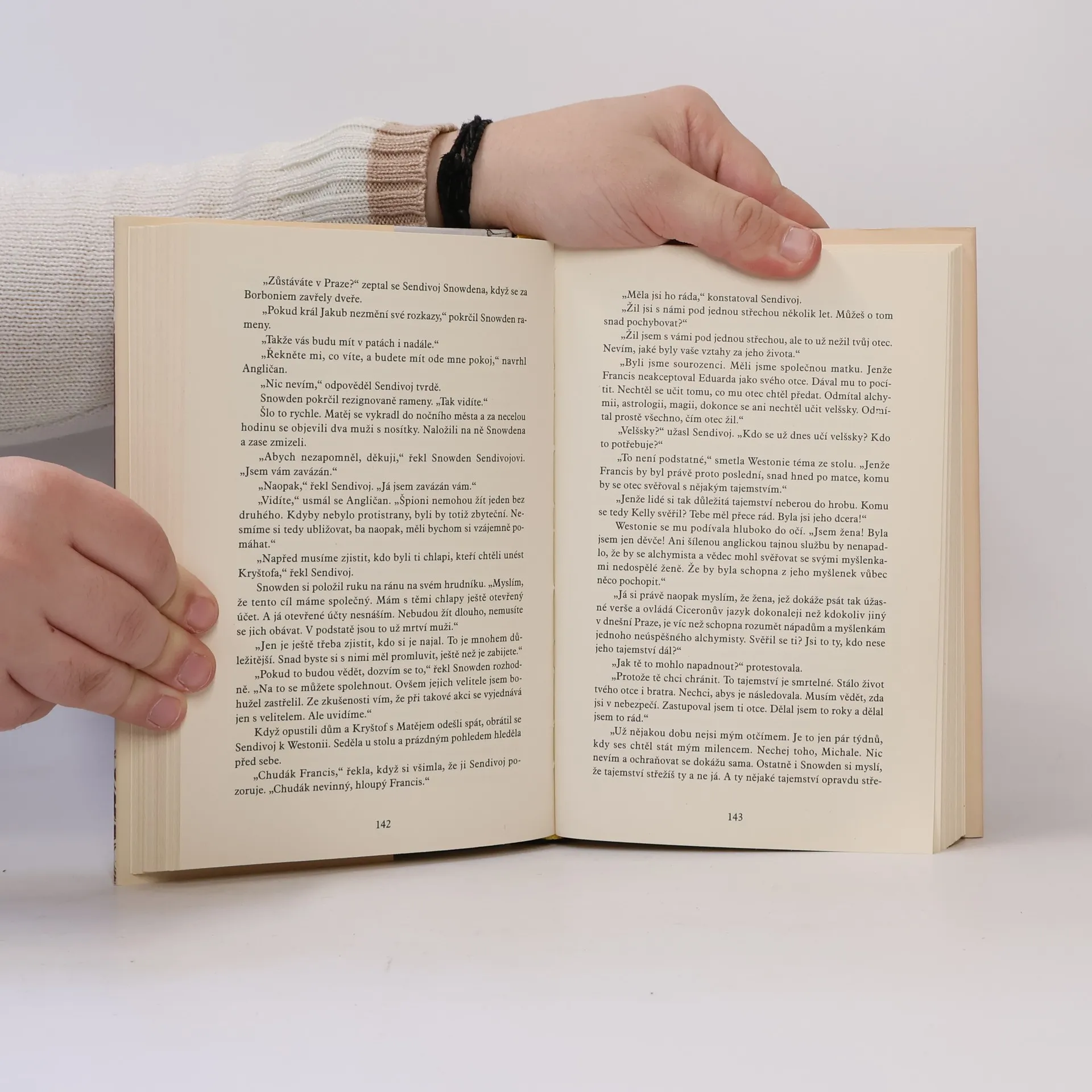 Renomovaný autor historických románů ve své nové knize rozehrává strhující příběh o pátrání po tajemné knize, inspirovaný osudem proslulého rukopisu, který dodnes nebyl rozluštěn. Příběh, situovaný do Prahy na počátku 17. století, se odehrává v roce 1608, kdy je Praha hlavním městem Svaté říše římské a sídlem císaře Rudolfa II., známého svou náklonností k magii a alchymii. V městě se shromažďují vzdělanci a vědci, jako Johannes Kepler a Oswald Croll, zatímco nad městem se vznáší stín války a blížící se pohromy. Do města přijíždí polský alchymista Michal Sendivoj, který je hnán nočními setkáními s Mefistem a pátrá po klíči k lidské nesmrtelnosti, zakódovaném v tajuplné knize. Pomoc nachází u latinské básnířky Westonie, která hraje osudovou roli. Všichni účastníci, včetně vědců a rosekruciánů, pátrají po tajemství, které má změnit chod světa. Na této honbě se podílejí muži od bezvýznamného úředníka Jakuba Horčického až po samotného císaře, přičemž jsou ochotni použít jakékoli prostředky, včetně podplácení a vražd. Román, inspirovaný záhadným rukopisem, rozvíjí napínavý příběh o věčném boji mezi dobrem a zlem na pozadí věrně vykreslených dobových reálií.