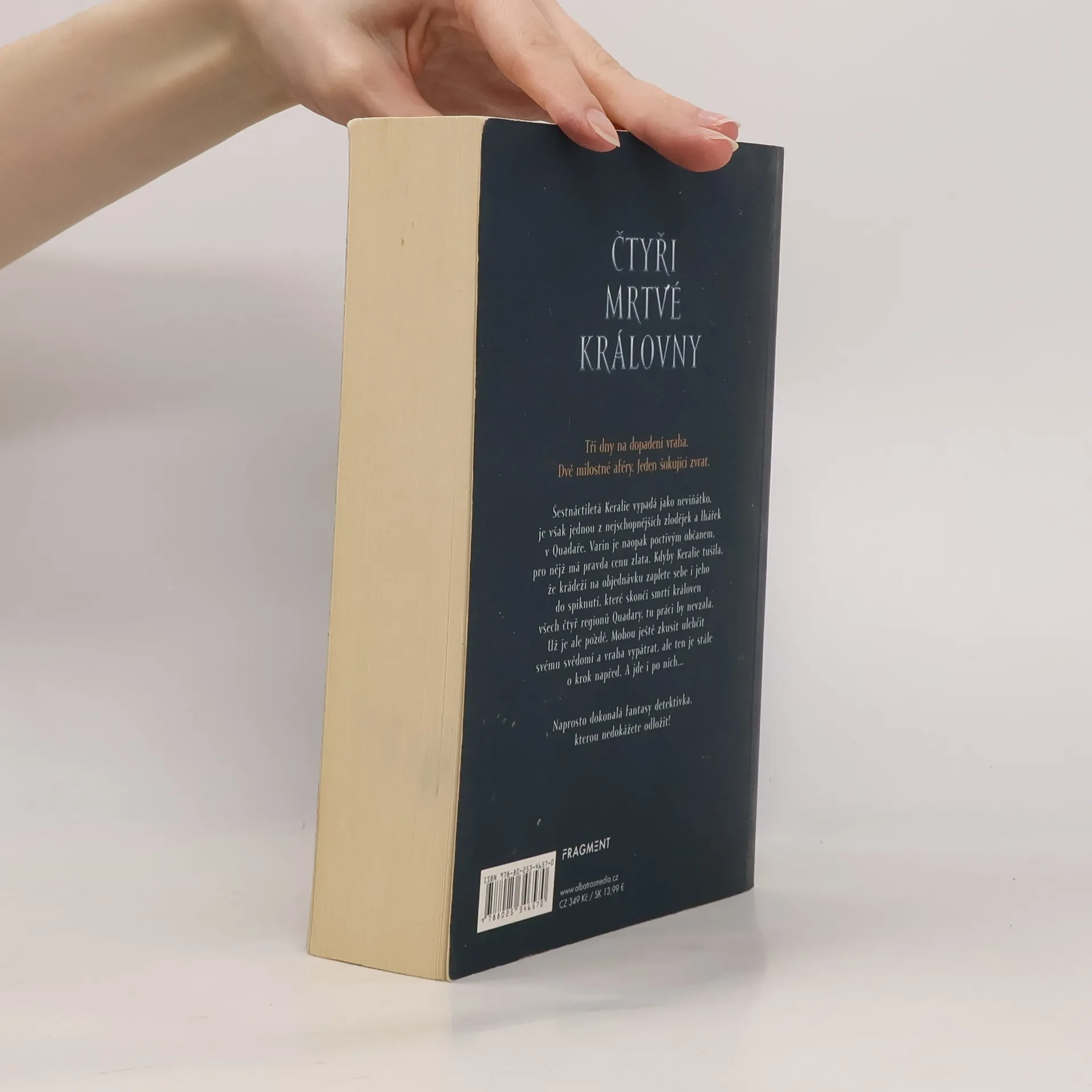 Dechberoucí pátrání po vrahovi čtyř královen. Čtyři mrtvé královny. Tři dny na dopadení vraha. Dvě milostné aféry. Jeden šokující zvrat. Šestnáctiletá Keralie vypadá jako neviňátko, ve skutečnosti je ale jednou z nejschopnějších zlodějek a lhářek v Quadaře. Varin je jejím dokonalým protikladem – poctivým a bezúhonným občanem, pro něhož má pravda cenu zlata. Kdyby Keralie tušila, že krádeží na objednávku zaplete sebe i jeho do spiknutí, které skončí smrtí královen všech čtyř regionů Quadary, tu práci by nepřijala. Teď už je ale pozdě. Pokud chtějí ulehčit svému svědomí, musí přijít na to, kdo za rafinovanými vraždami stojí. Zemí se šíří panika a vrah je pořád jeden krok před nimi. A jde i po nich... Naprosto dokonalá fantasy detektivka, kterou nedokážete odložit!