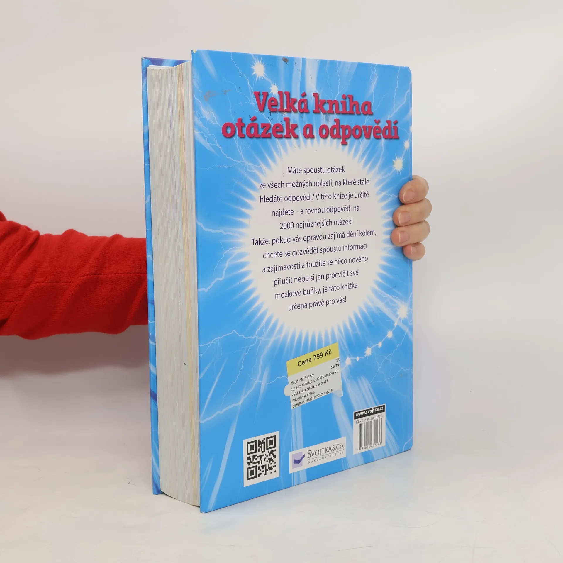 Kolik má ramen chobotnice? Které stromy vyrostou nejvýše? Kdo hrál úplně první počítačové hry? Co je Mléčná dráha? Které je nejrychlejší auto na světě? Co to znamená fair play? Existuje opravdová kouzelnická škola? Kdo má první pozdravit? Víte všechno o zvířatech nebo o astrologii? Zajímá vás, proč se některé věci nebo činnosti nazývají tak, jak se nazývají? Nebo snad máte zájem o největší světové rekordy? Víte, jak a proč se věci na světě dějí? A co všechno víte o sportu, kouzlech, magii a čarodějnictví nebo o základech slušného chování? Chcete vědět všechno o tom, co se děje kolem aut? Máte spoustu otázek ze všech možných oblastí, na které stále hledáte odpovědi? V této knize je určitě najdete – a rovnou odpovědi na 2000 nejrůznějších otázek!