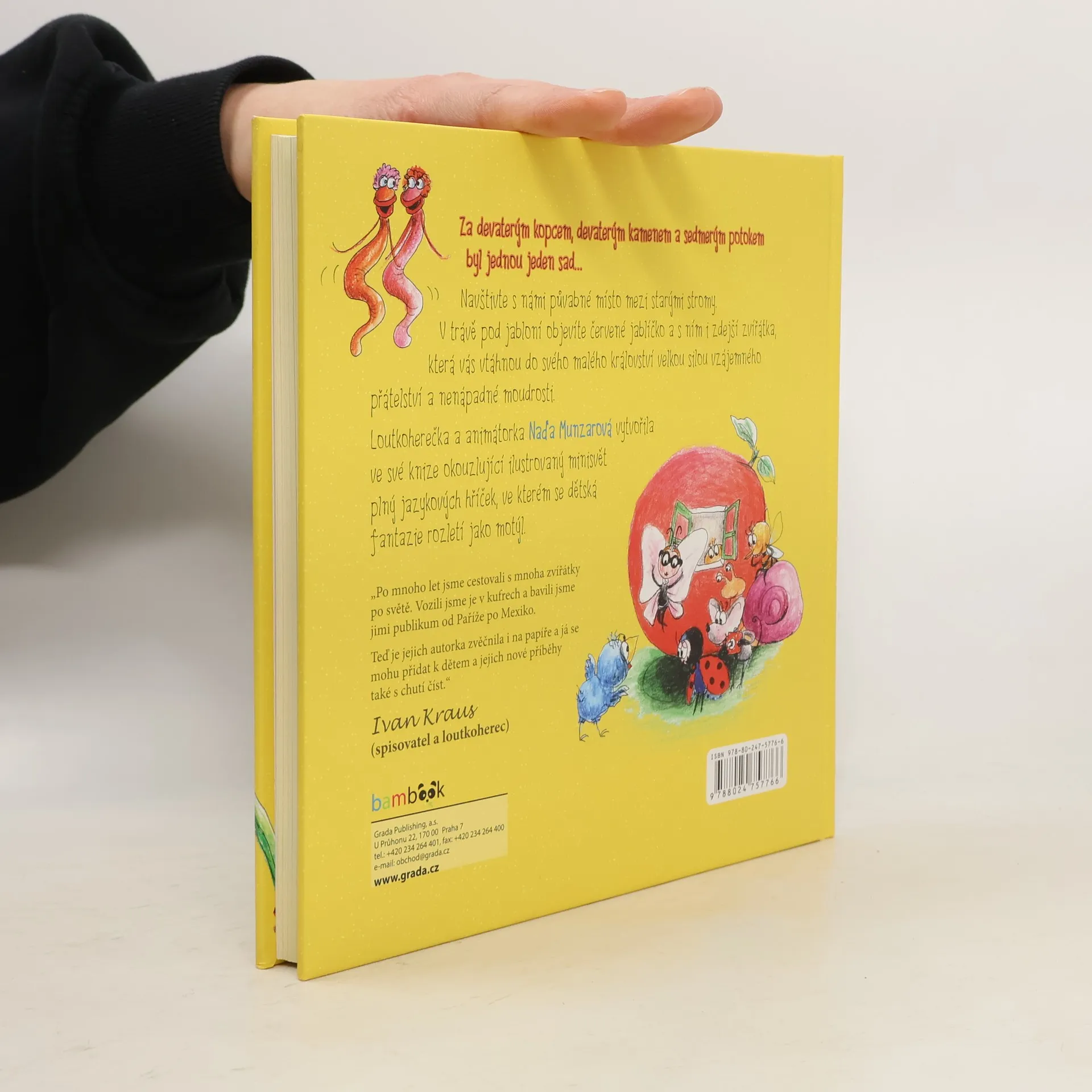 Za devaterým kopcem, devaterým kamenem a sedmerým potokem byl jednou jeden sad... Navštivte s námi půvabné místo mezi starými stromy. V trávě pod jabloní objevíte červené jablíčko a s ním i zdejší zvířátka, která vás vtáhnou do svého malého království velkou silou vzájemného přátelství a nenápadné moudrosti. Loutkoherečka a animátorka Naďa Munzarová vytvořila ve své autorské knize okouzlující mikrokosvět plný půvabných ilustrací a jazykových hříček, ve kterém se dětská fantazie rozletí jako motýl. Jak je dlouhý čas? Kde se berou oblaka? Jaké to je, když vás napadne nápad? Proč je cenné i to, co se nepovede? Čiperná zvířátka vám napoví. Prožijte spolu s Červíkem, Ptáčkem, Žábou, Motýlkem, Beruškou, Slimejšem a Myškou celý rok ve starém sadu a zažijte radost ze skvělého pohádkového vyprávění.