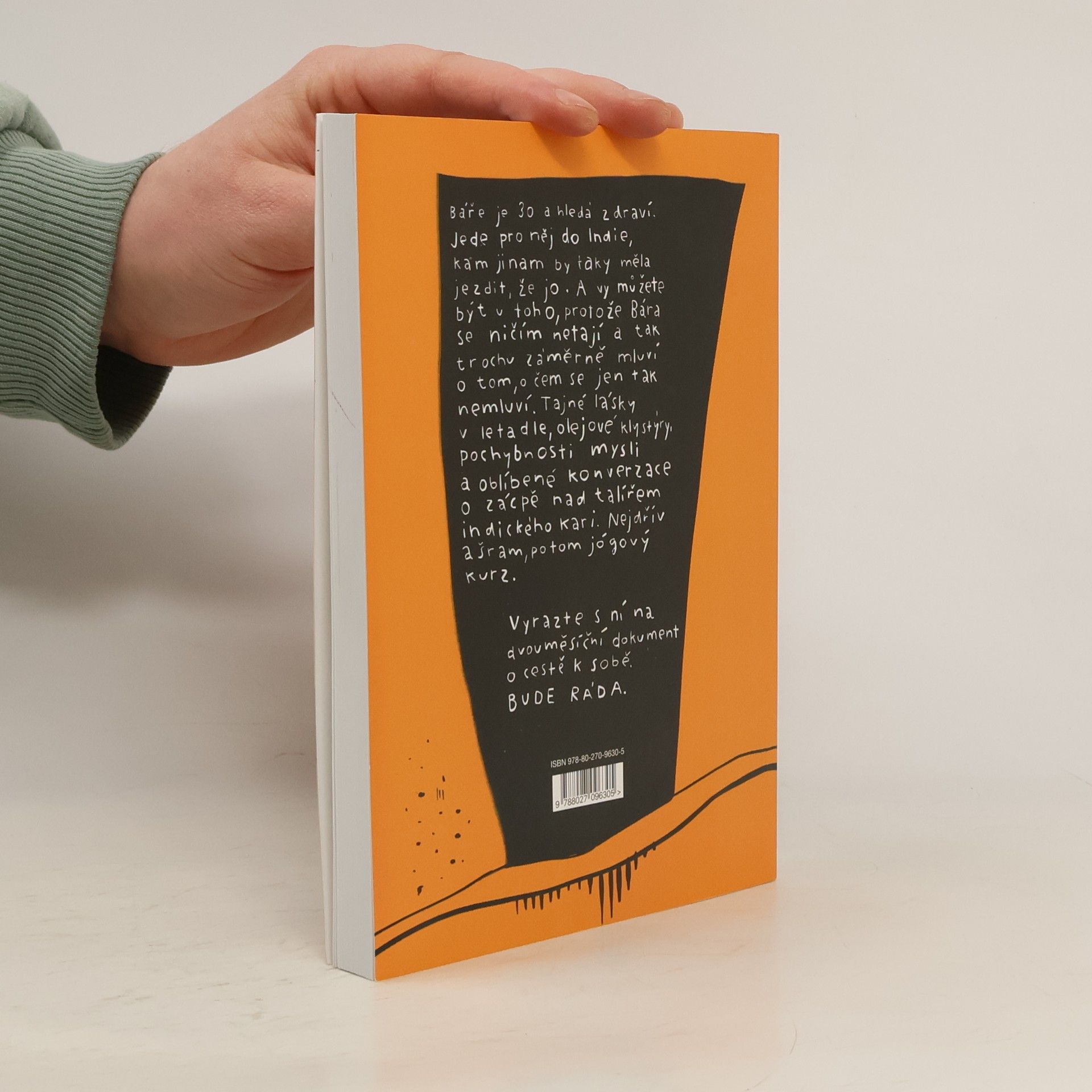 Báře je 30 a hledá zdraví. Jede pro něj do Indie, kam jinam by taky měla jezdit, že jo. A vy můžete být u toho, protože Bára se ničím netají a tak trochu záměrně mluví o tom, o čem se jen tak nemluví. Tajné lásky v letadle, olejové klystýry, pochybnosti mysli a oblíbené konverzace o zácpě nad talířem indického kari. Nejdřív ašram, potom jógový kurz. Vyrazte s ní na dvouměsíční dokument o cestě k sobě. Bude ráda.