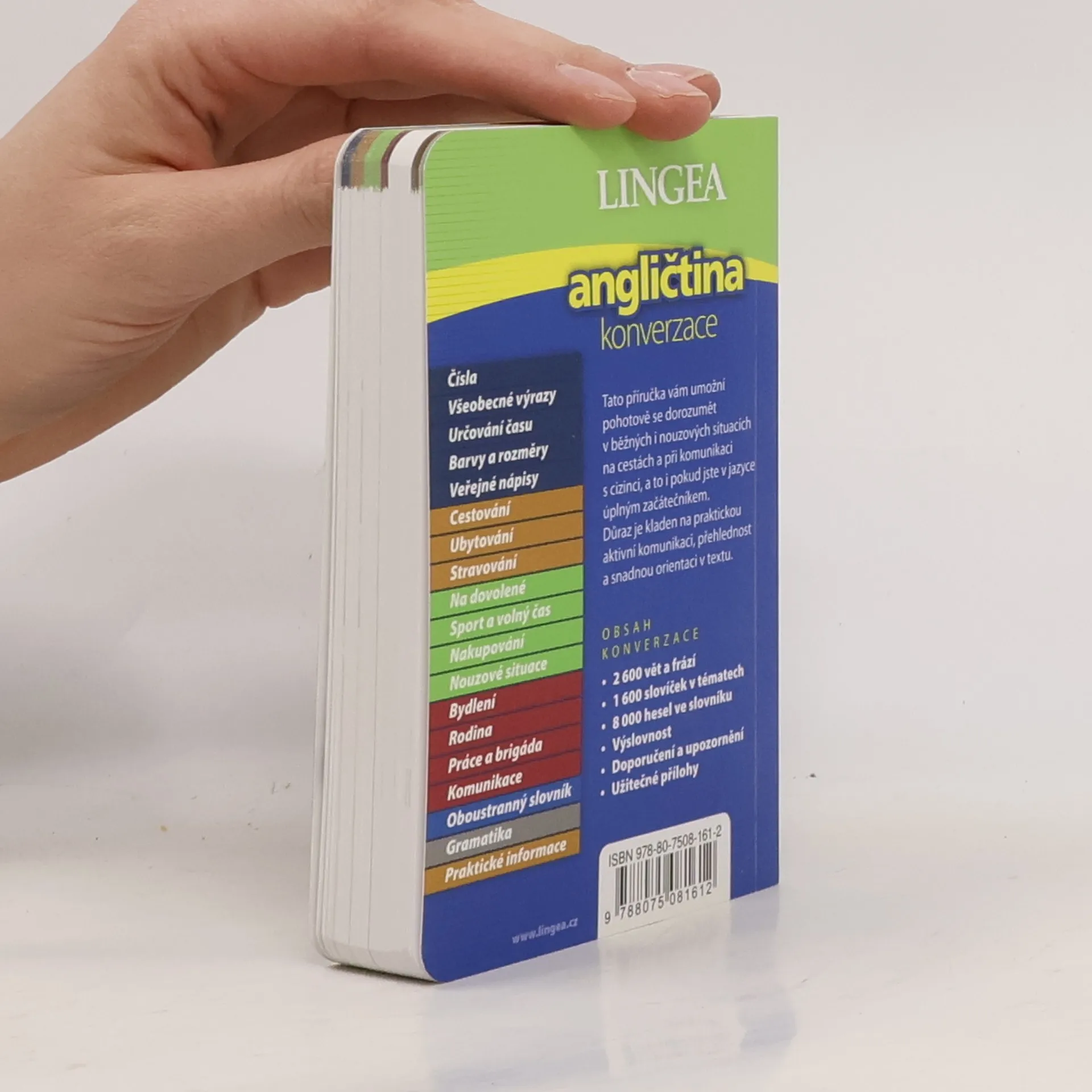 Nejmodernější a nejpodrobnější konverzační příručka na trhu s výrazně praktickým zaměřením. Na 352 stranách najdete 120 témat, oboustranný slovník s 8000 hesly, přehled gramatiky a řadu užitečných informací o anglicky mluvících zemích. U každé fráze a slovíčka je uveden zjednodušený fonetický přepis výslovnosti vhodný i pro začátečníky.