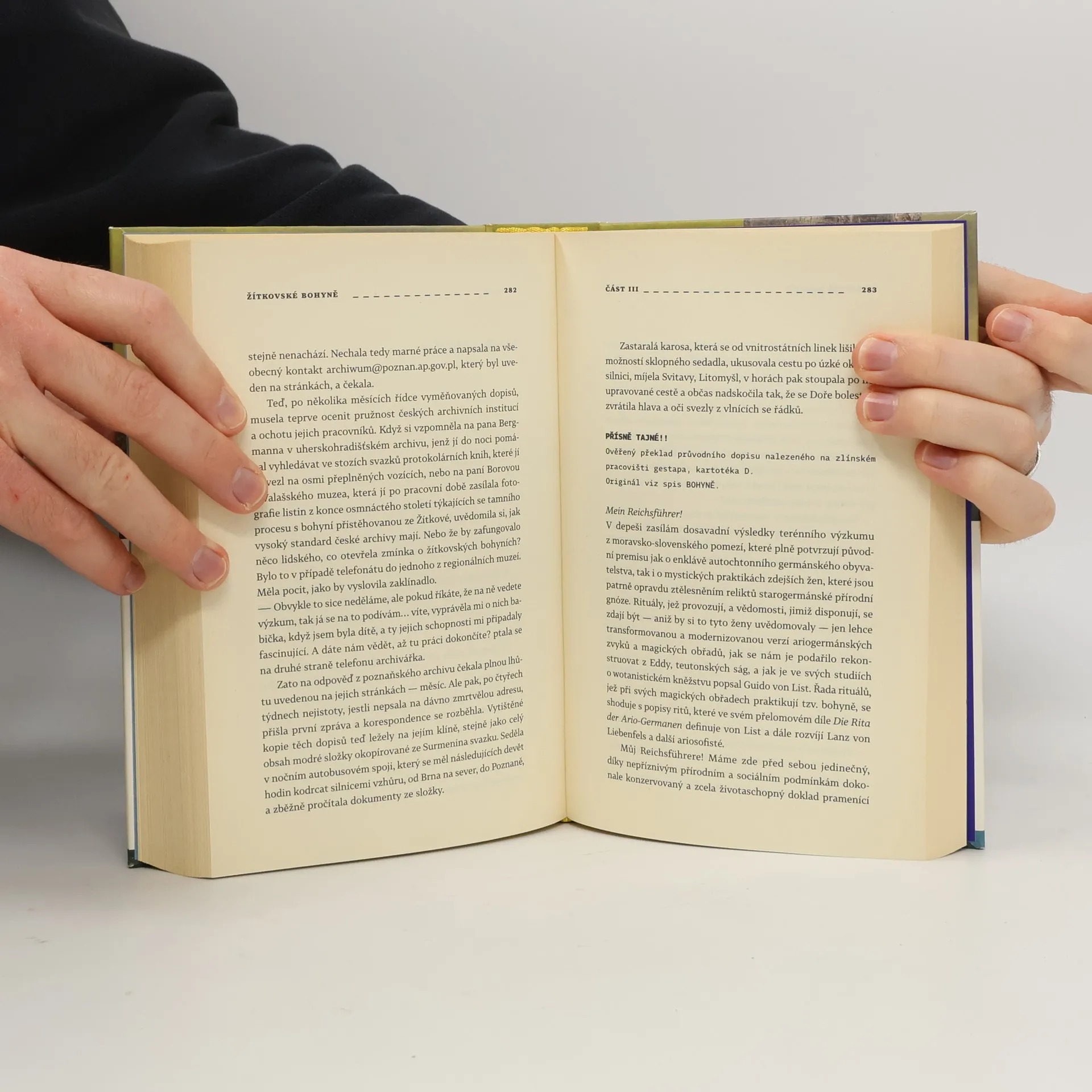 Vysoko v kopcích Bílých Karpat jsou řídce rozeseta přikrčená stavení. Všude je daleko. Říká se, že právě proto si tam některé ženy dokázaly uchovat vědomosti a intuici, kterou jsme ztratili. Předávaly si ji z generace na generaci řadu století. Říkali jim bohyně, protože dokázaly bohovat – prosit Boha o pomoc. A jeho zásahům i trošku dopomoci… Říkalo se o nich, že vidí do budoucnosti. Proč tedy nezachránily tu svou? Dora Idesová je poslední z bohyní. Brání se přijmout zastaralý způsob života a věštit příchozím z odlitého vosku jako její teta Surmena. Vše se ovšem mění, jakmile pochopí, že co se v jejím životě zdálo být nešťastnou shodou okolností, bylo pečlivě promyšleným plánem. Její umístění v internátě, Jakoubkova ústavní péče, hospitalizace v psychiatrické léčebně v Kroměříži… Na konci 90. let na ni v pardubickém archivu ministerstva vnitra čeká operativní svazek vedený StB na vnitřního nepřítele – její tetu Surmenu. Dora nevěřícně rozplétá neznámé osudy své rodiny i dalších bohyní…