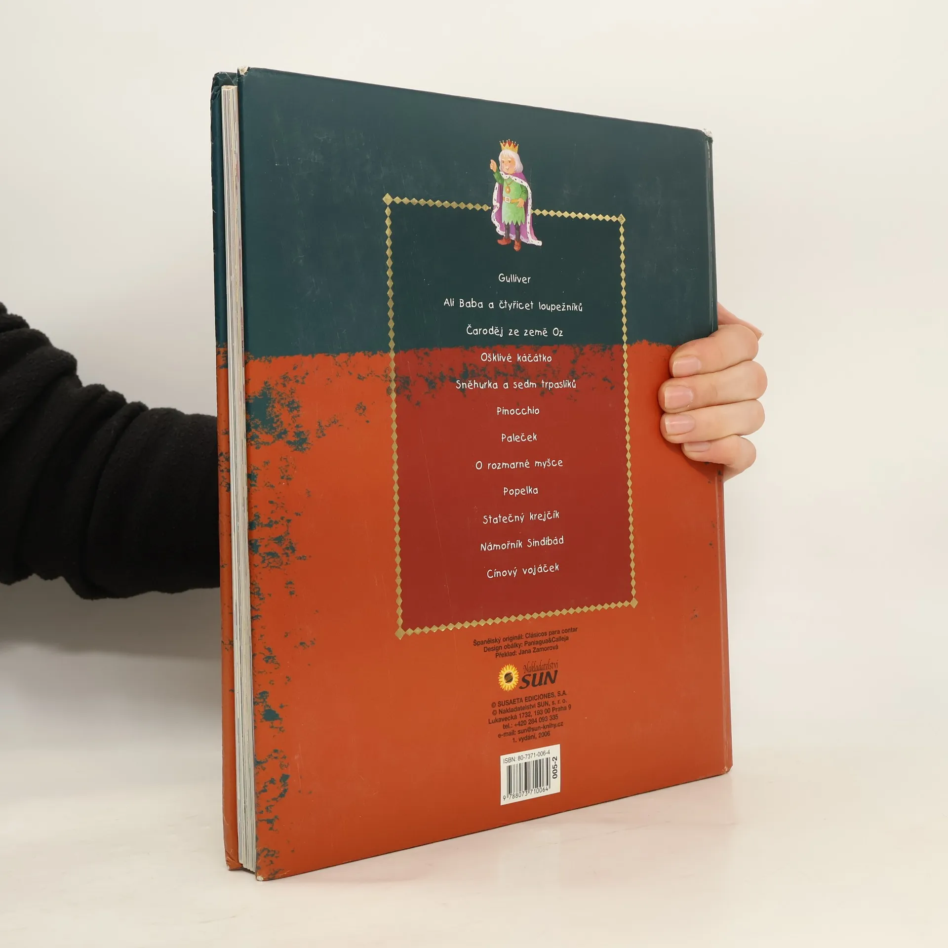 Tato kniha obsahuje ty nejznámější příběhy slavných pohádkářů, které se neomrzí žádnému dítěti: Gulliver, Ali Baba a čtyřicet loupežníků, Čaroděj ze země Oz, Ošklivé káčátko,Sněhurka a sedm trpas1íků, Pinocchio, Paleček, O rozmarné myšce, Popelka, Statečný krejčík, Námořník Sindibád, Cínový vojáček. Nádherné barevné ilustrace umocňuje luxusní obálka se zlatým písmem. Pevná polstrovaná vazba LUX. Psáno velkými tiskacími písmenky.