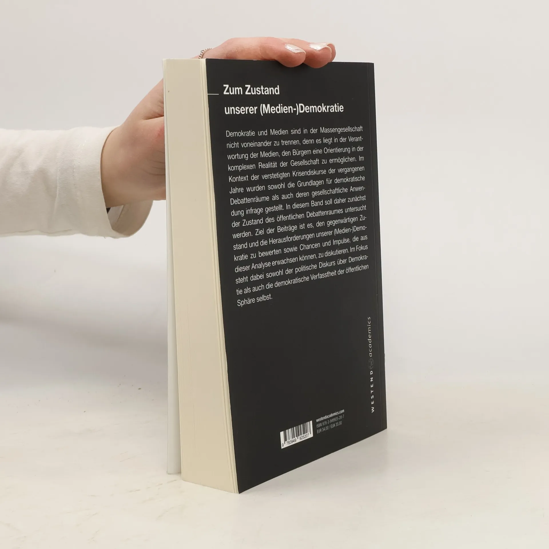 Demokratie und Medien sind in der Massengesellschaft nicht voneinander zu trennen, denn es liegt in der Verantwortung der Medien, den Bürgern eine Orientierung in der komplexen Realität der Gesellschaft zu ermöglichen. Im Kontext der verstetigten Krisendiskurse der vergangenen Jahre wurden sowohl die Grundlagen für demokratische Debattenräume als auch deren gesellschaftliche Anwendung infrage gestellt. In diesem Band soll daher zunächst der Zustand des öffentlichen Debattenraumes untersucht werden. Ziel der Beiträge ist es, den gegenwärtigen Zustand und die Herausforderungen unserer (Medien-)Demokratie zu bewerten sowie Chancen und Impulse, die aus dieser Analyse erwachsen können, zu diskutieren. Im Fokus steht dabei sowohl der politische Diskurs über Demokratie als auch die demokratische Verfasstheit der öffentlichen Sphäre selbst.