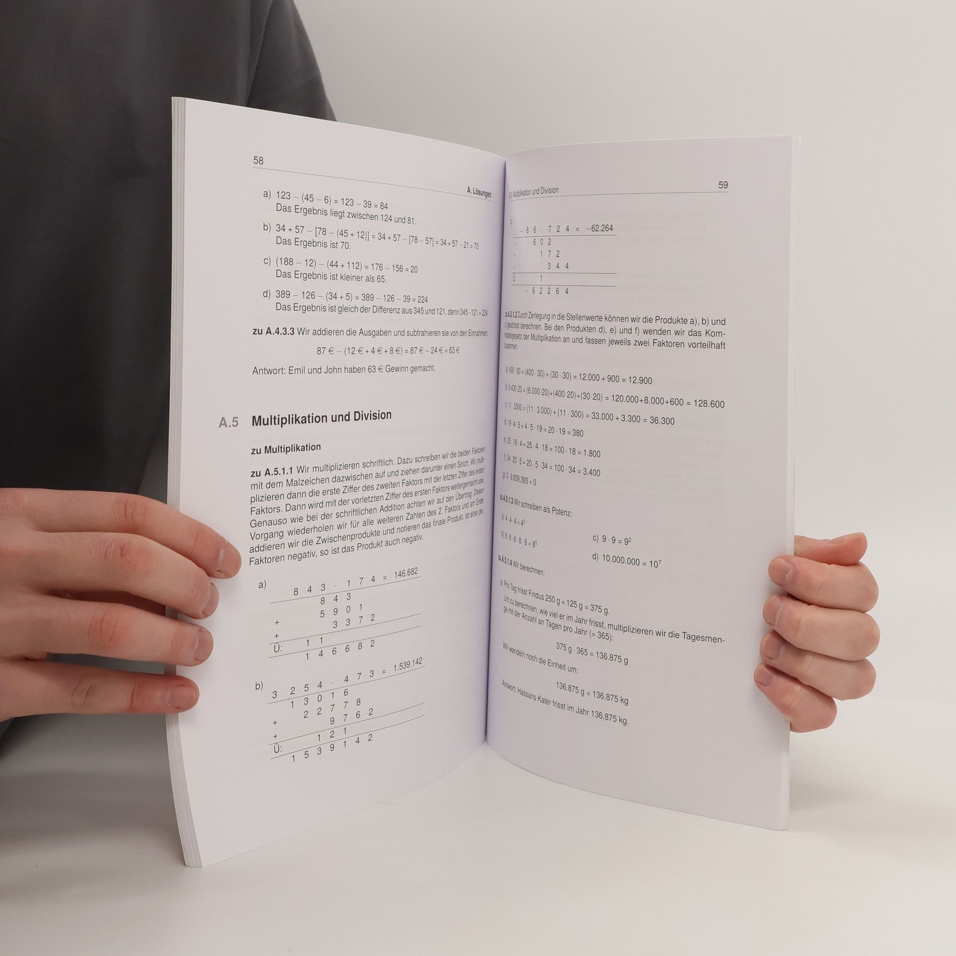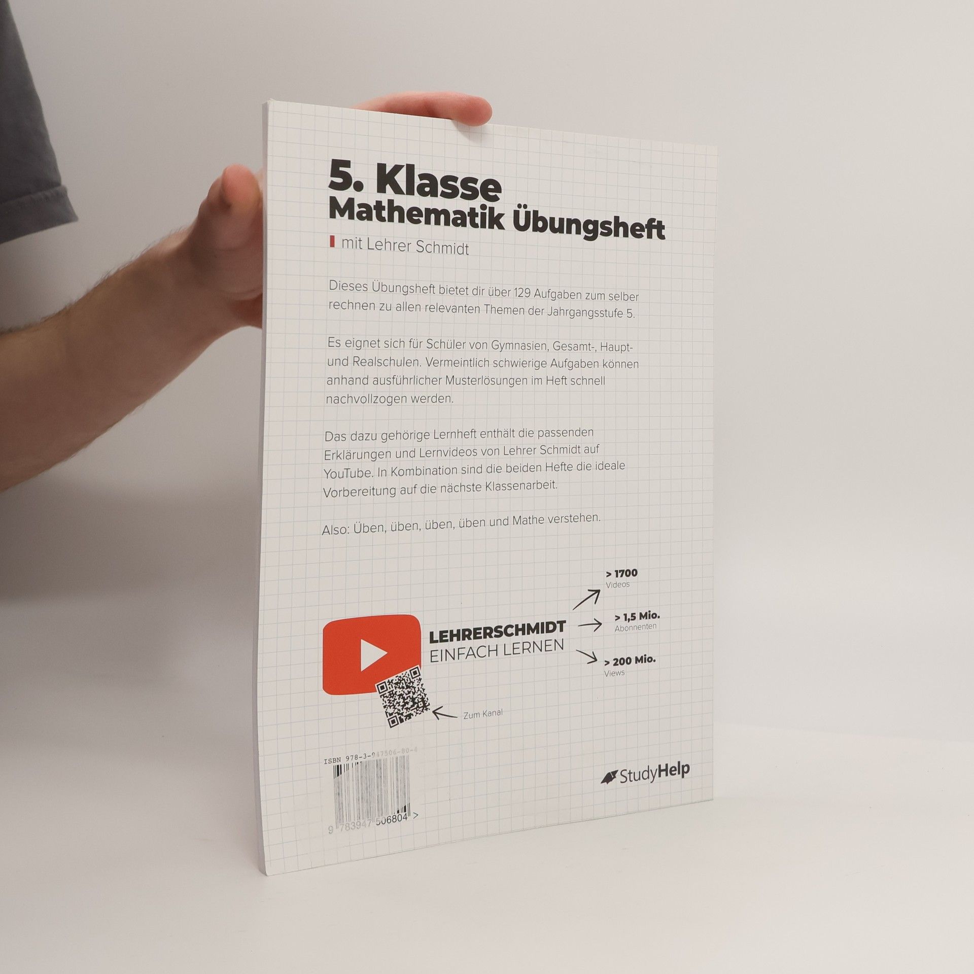 Hier geht es nur um eins: Rechnen, rechnen, rechnen und üben, üben, üben. Wenn Dir die Aufgaben aus dem gleichnamigen Lernheft von Lehrer Schmidt nicht reichen, findest du hier zahlreiche weitere Aufgaben zum rechnen. 86 Seiten starke Aufgabensammlung Ziel: erlerntes Wissen anwenden und Sicherheit gewinnen 129 Aufgaben inkl. ausführlichen Lösungen Hilfreiche Lernvideos zum erfolgreichen Bearbeiten der Aufgaben passend zu dem Mathe 5. Klasse Lernheft von Lehrer Schmidt Die passende Aufgabensammlung (inkl. Lösungen) für deinen Erfolg in der 5. Klasse. Die Aufgabensammlung enthält 86 Seiten mit über 129 verschiedenen Aufgaben und Lösungswegen aus allen relevanten Themenbereichen der 5. Klasse. Hast du erst einmal das Schema hinter einer Aufgabe verstanden, werden weitere Aufgaben für dich leicht zu lösen sein. Mit diesem Heft kannst du zahlreiche Aufgaben eigenständig rechnen und Dein erlangtes Wissen anhand gegebener Musterlösungen überprüfen. Es ist die ideale Ergänzung zu dem 5. Klasse Mathematik Lernheft von Lehrer Schmidt. Inhaltsverzeichnis Zahlen darstellen Daten und Zufall Zeichnen und Messen Addition und Subtraktion Multiplikation und Division Lösen von Gleichungen und Ungleichungen Größen Zweidimensionale Figuren Flächeninhalte und Umfang Dreidimensionale Figuren Rauminhalte Lösungen