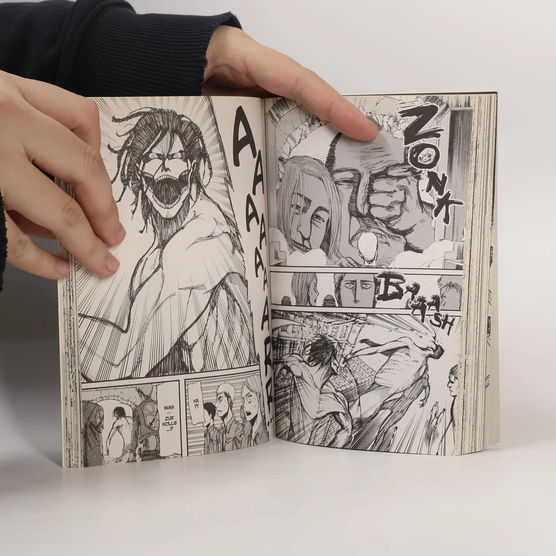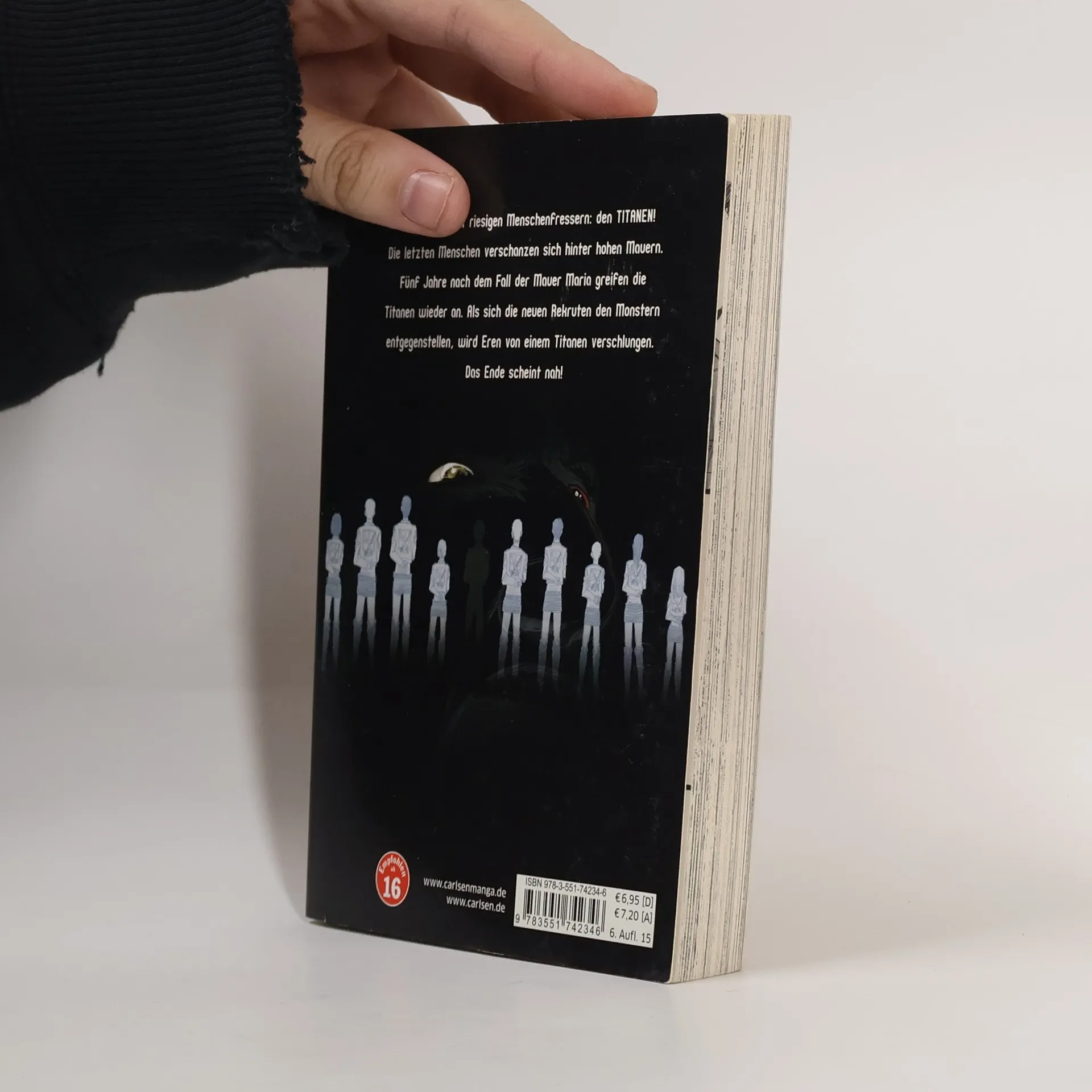Dieser einzigartige Manga um den verzweifelten Kampf der Menschheit gegen übermächtige Titanen vereint Action, Fantasy und Horror in einer mitreißenden Geschichte. Attack on Titan gilt weltweit als einer der beliebtesten Titel und sorgt auch als Anime, Realfilm und mit diversen Videospielen für Furore! Die Erde gehört riesigen Menschenfressern: den TITANEN! Fünf Jahre nach dem Fall der Mauer Maria greifen die Titanen noch einmal die letzten Menschen an. Als sich die neuen Rekruten den Monstern entgegenstellen, wird Eren von einem Titan verschlungen. Das Ende scheint nah. Weitere Infos: - ab 16 Jahren- Abgeschlossen in 34 Bänden- edle Deluxe-Edition im Hardcover erhältlich- mehrere Spin-off-Serien und Guidebooks - Anime und Filme bei Kazé und als Stream- diverse Videospiele