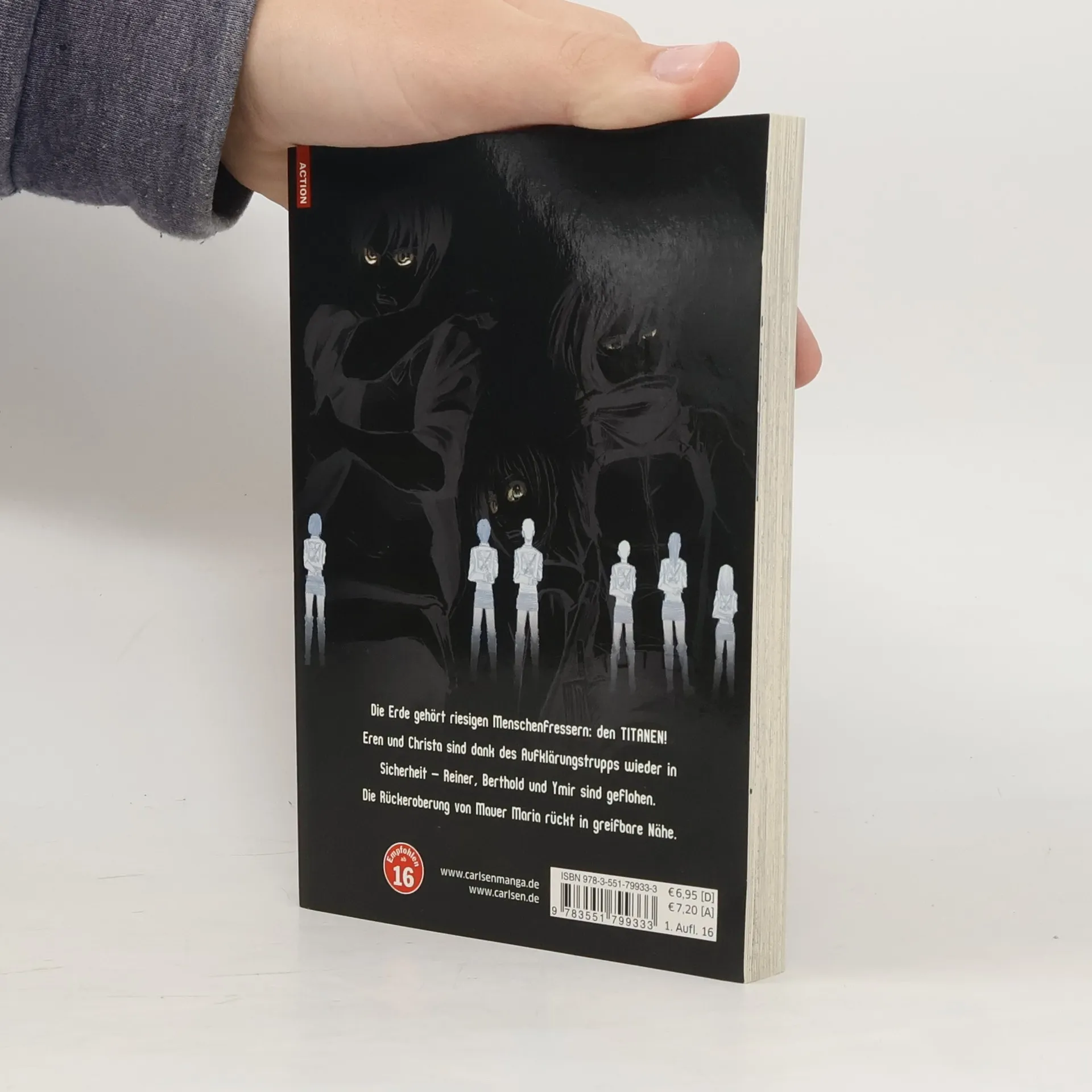 Dieser einzigartige Manga um den verzweifelten Kampf der Menschheit gegen übermächtige Titanen vereint Action, Fantasy und Horror in einer mitreißenden Geschichte. Attack on Titan gilt weltweit als einer der beliebtesten Titel und sorgt auch als Anime, Realfilm und mit diversen Videospielen für Furore! Die Erde gehört riesigen Menschenfressern: den TITANEN! Eren und Christa sind dank des Aufklärungstrupps wieder in Sicherheit – Reiner, Berthold und Ymir sind geflohen. Die Rückeroberung von Mauer Maria rückt in greifbare Nähe. Weitere Infos: - ab 16 Jahren - Abgeschlossen in 34 Bänden - edle Deluxe-Edition im Hardcover erhältlich - mehrere Spin-off-Serien und Guidebooks - Anime und Filme bei Kazé und als Stream - diverse Videospiele