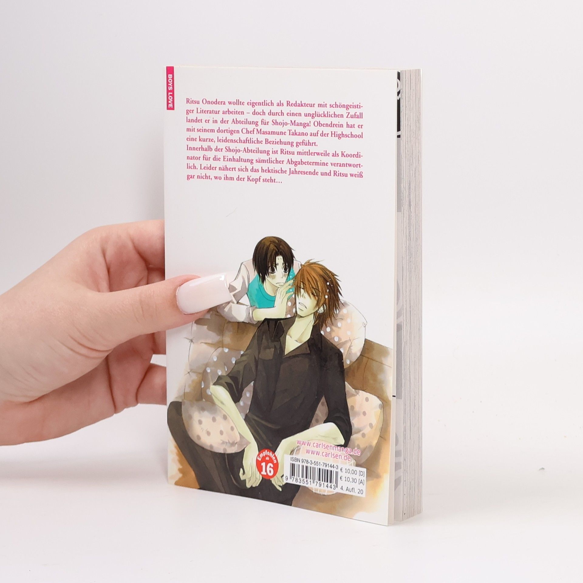 Es gibt wohl keinen „Boys-Love“-Fan, der nicht schon mal eins der Werke von Shungiku Nakamura gelesen hat: prägt sie doch seit mittlerweile über einem Jahrzehnt weltweit maßgeblich die Verlagsszene! Ritsu Onodera wollte eigentlich als Redakteur mit schöngeistiger Literatur arbeiten – doch durch einen unglücklichen Zufall landet er in der Abteilung für Shojo-Manga! Obendrein hat er mit seinem dortigen Chef Masamune Takano auf der Highschool eine kurze, leidenschaftliche Beziehung geführt. Innerhalb der Shojo-Abteilung ist Ritsu mittlerweile als Koordinator für die Einhaltung sämtlicher Abgabetermine verantwortlich. Leider nähert sich das hektische Jahresende und Ritsu weiß gar nicht, wo ihm der Kopf steht… Eine prickelnde Liebesgeschichte zwischen zwei Kollegen, die die Vergangenheit zwischen sich einfach nicht ruhen lassen können... Weitere Informationen: - Für Fans von JUNJO ROMANTICA - empfohlen ab 16 Jahren - Die Vorlage zur Anime-Adaption auf Crunchyroll