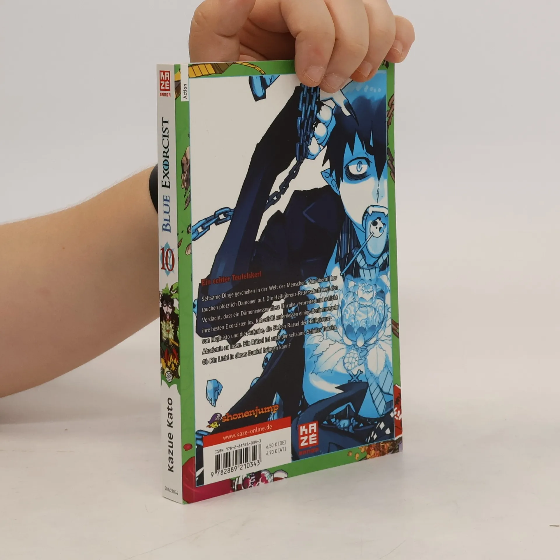 Seltsame Dinge geschehen in der Welt der Menschen. Von überallher tauchen plötzlich Dämonen auf. Die Heiligkreuz-Ritterschaft hegt den Verdacht, dass ein Dämonenesser diese Unruhe verbreitet und schickt ihre besten Exorzisten los. Rin erhält unterdessen einige Benimmregeln von Mephisto und die Aufgabe, die Sieben Rätsel der Heiligkreuz-Akademie zu lösen. Ein Rätsel ist auch der seltsame Schüler Tanaka. Ob Rin Licht in dieses Dunkel bringen kann?