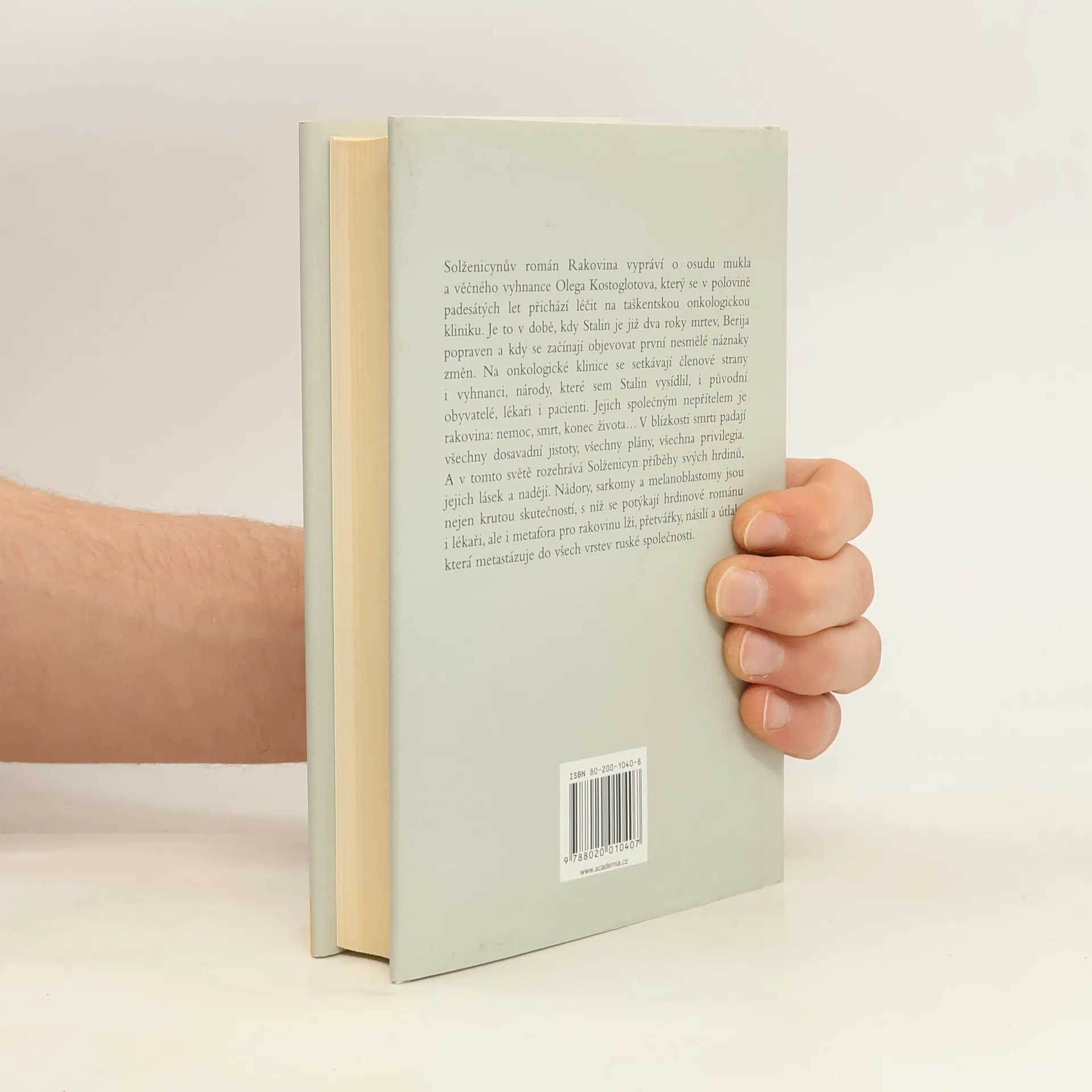 Román sleduje osud člověka, který na vlastní kůži zažil hrůzy stalinských lágrů a vyhnanství, onemocněl a přichází se léčit na onkologickou kliniku. Zde se protíná řada lidských osudů v široké plejádě pacientů - prominentních komunistů, vyhnanců, původních obyvatel i příslušníků vysídlených národů. Společným nepřítelem všech, mladých, starých, lékařů i pacientů je v této nemocnici smrtící nádor. Rakovina však jakoby prostupovala celou společností, která se jen zvolna zotavuje z období kultu osobnosti, nejstrašnější etapy moderních ruských dějin.