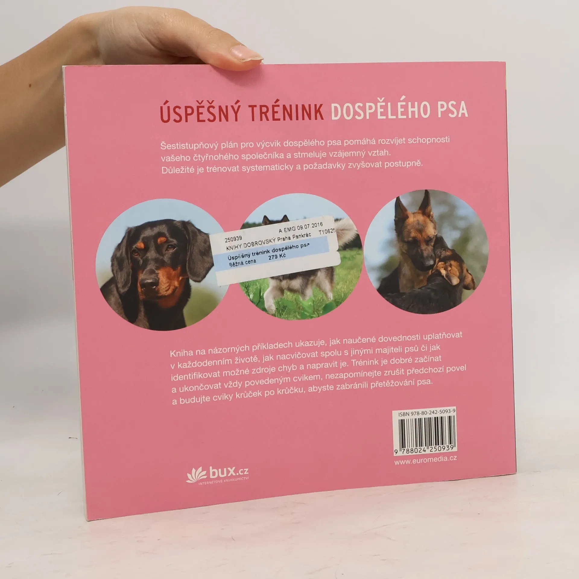 Šestistupňový plán pro výcvik dospělého psa pomáhá rozvíjet schopnosti vašeho čtyřnohého společníka a stmeluje vzájemný vztah. Důležité je trénovat systematicky a požadavky zvyšovat postupně. Kniha na názorných příkladech ukazuje, jak naučené dovednosti uplatňovat v každodenním životě, jak nacvičovat spolu s jinými majiteli psů či jak identifikovat možné zdroje chyb a napravit je. Trénink je dobré začínat a ukončovat vždy povedeným cvikem, nezapomínejte zrušit předchozí povel a budujte cviky krůček po krůčku, abyste zabránili přetěžování psa.