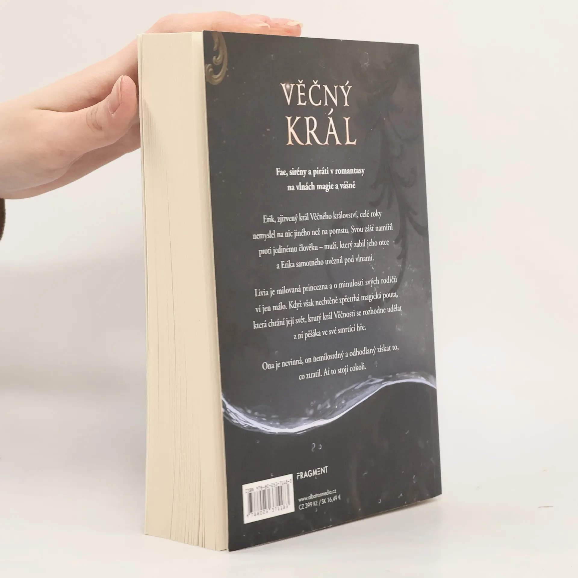Fae, sirény a piráti v romantasy na vlnách magie a vášně. Erik, zjizvený král Věčného království, celé roky nemyslel na nic jiného než na pomstu. Svou zášť namířil proti jedinému člověku – muži, který zabil jeho otce a Erika samotného uvěznil pod vlnami. Livia je milovaná princezna a o minulosti svých rodičů ví jen málo. Když však nechtěně zpřetrhá magická pouta, která chrání její svět, krutý král Věčnosti se rozhodne udělat z ní pěšáka ve své smrtící hře. Ona je nevinná, on nemilosrdný a odhodlaný získat to, co ztratil. Ať to stojí cokoli.
