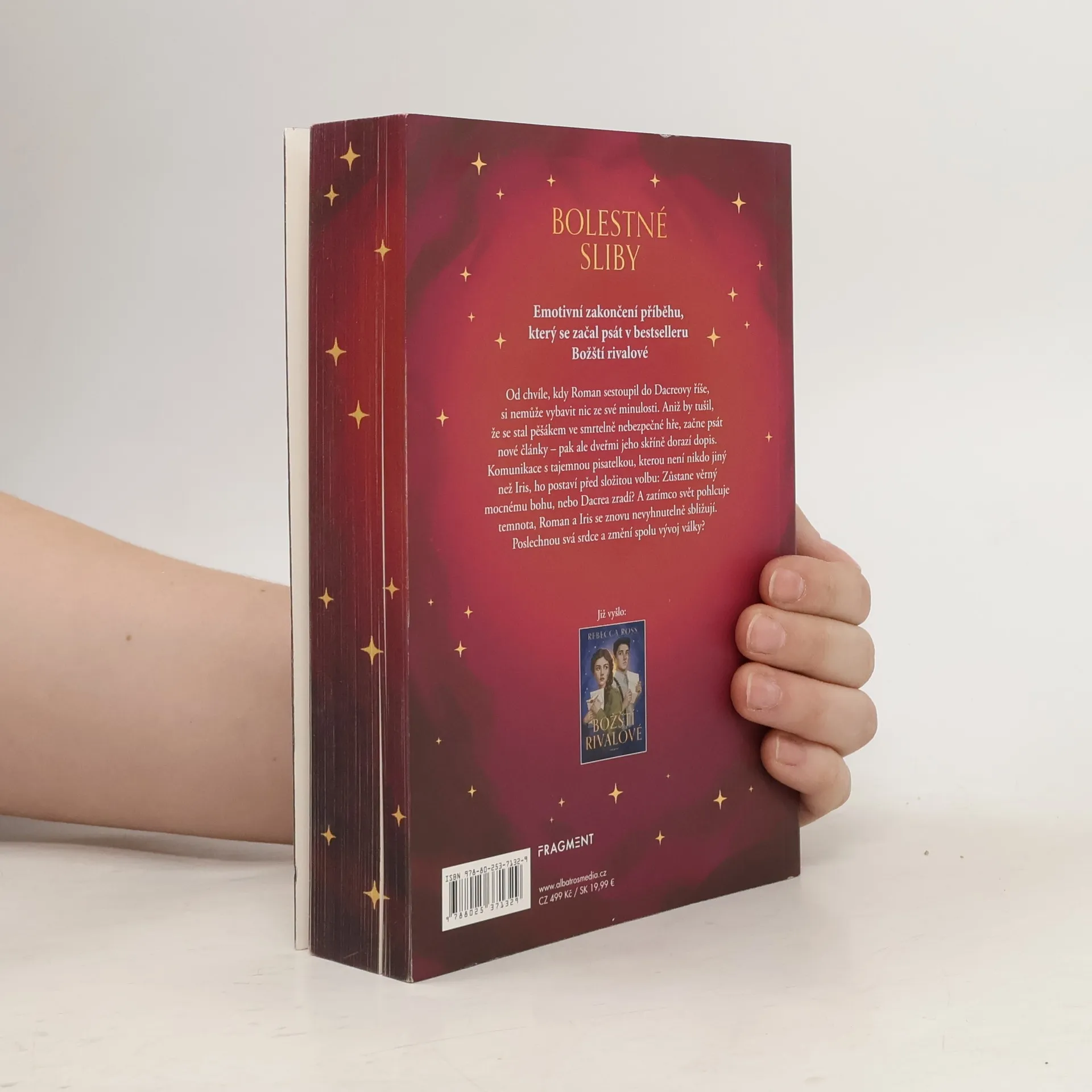 Emotivní zakončení příběhu, který se začal psát v bestselleru Božští rivalové. Od chvíle, kdy Roman sestoupil do Dacreovy říše, si nemůže si vybavit nic ze své minulosti. Aniž by tušil, že se stal pěšákem ve smrtelně nebezpečné hře, začne psát nové články – pak ale dveřmi jeho skříně dorazí dopis. Komunikace s tajemnou pisatelkou, kterou není nikdo jiný než Iris, ho postaví před složitou volbu: Zůstane věrný mocnému bohu, nebo Dacrea zradí? A zatímco svět pohlcuje temnota, Roman a Iris se znovu nevyhnutelně sbližují. Poslechnou svá srdce a změní spolu vývoj války?
