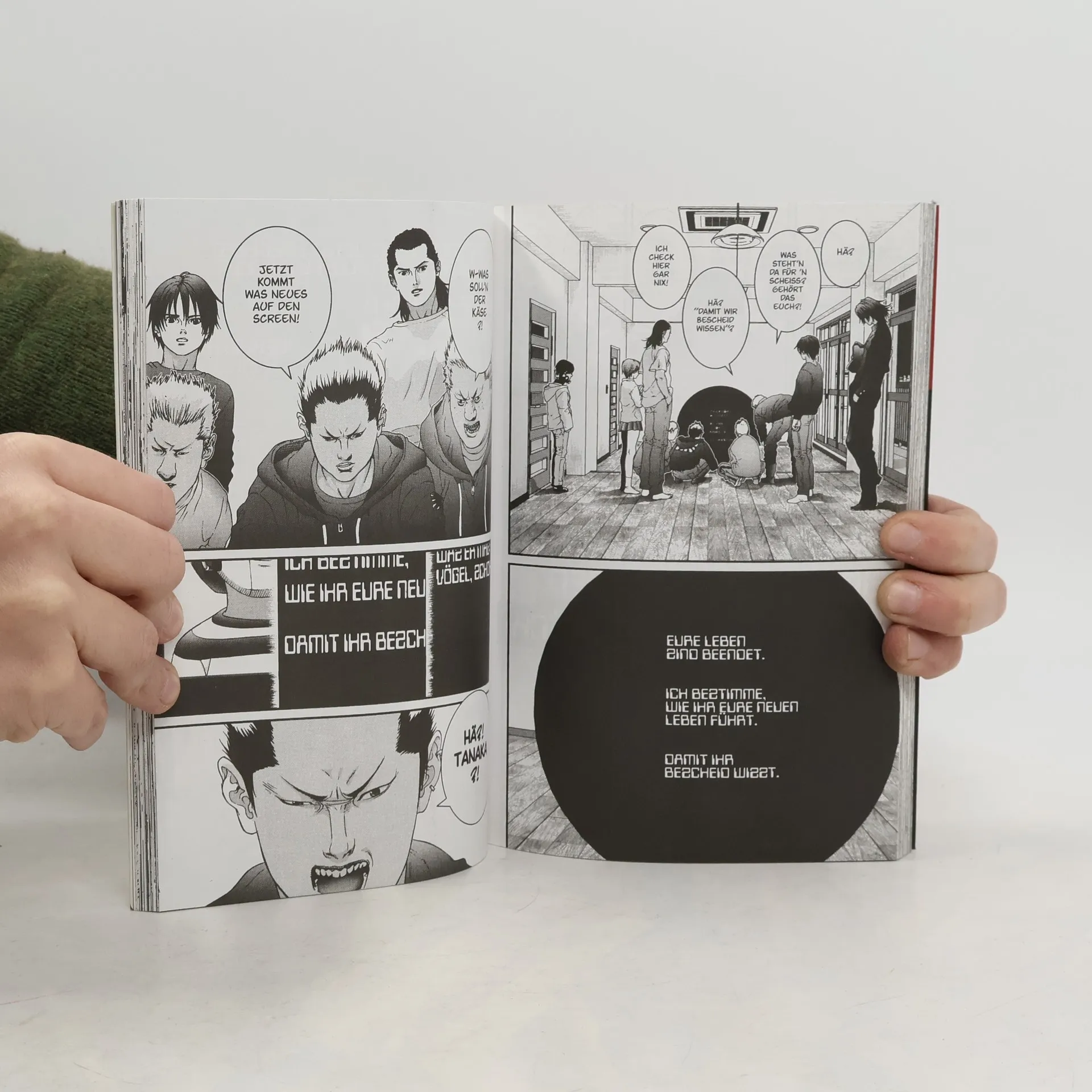 Tokio. Eine Gruppe unterschiedlicher Menschen: Schüler, Mafiosi, Angestellte. Alle im selben Raum. Und alle tot. Zumindest für unsere Welt. Denn in ihrer, einer Zwischenwelt, wer-den sie sich auf die Jagd nach Außerirdischen, seltsamen Zwiebelmenschwesen, begeben, und auf die Suche nach Antworten, was sie nun sind. Ein Manga für Erwachsene, brutal, mysteriös, verstörend, mitreißend. Ab dem zweiten Band trägt die Serie deshalb auch das Label „ab 16 Jahren“. Vom selben Zeichner erscheint auch die Serie Zero One in der Reihe Planet Manga Next. Altersempfehlung: Ab 16 Jahren.