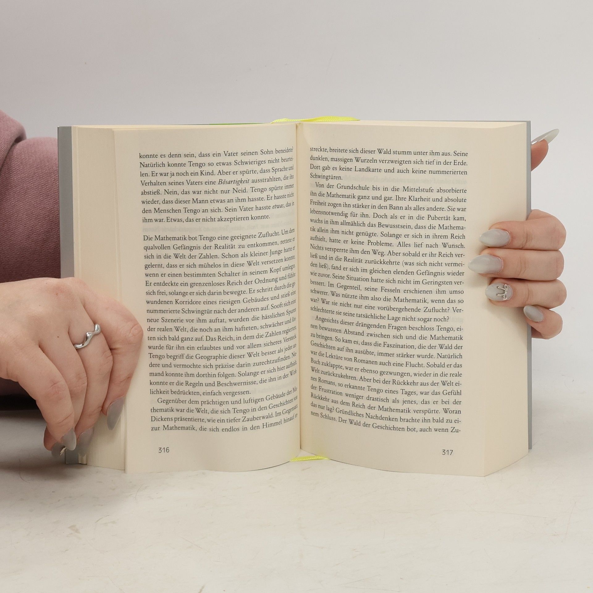 1984. Aomame hat zwei verschieden große Ohren. Beim Rendezvous mit einem reichen Ölhändler zückt sie eine Nadel und ersticht ihn – ein Auftragsmord, um altes Unrecht zu sühnen. Tengo ist Hobby-Schriftsteller. Er soll einen Roman der exzentrischen 17-jährigen Fukaeri überarbeiten, damit sie einen Literaturpreis bekommt.
