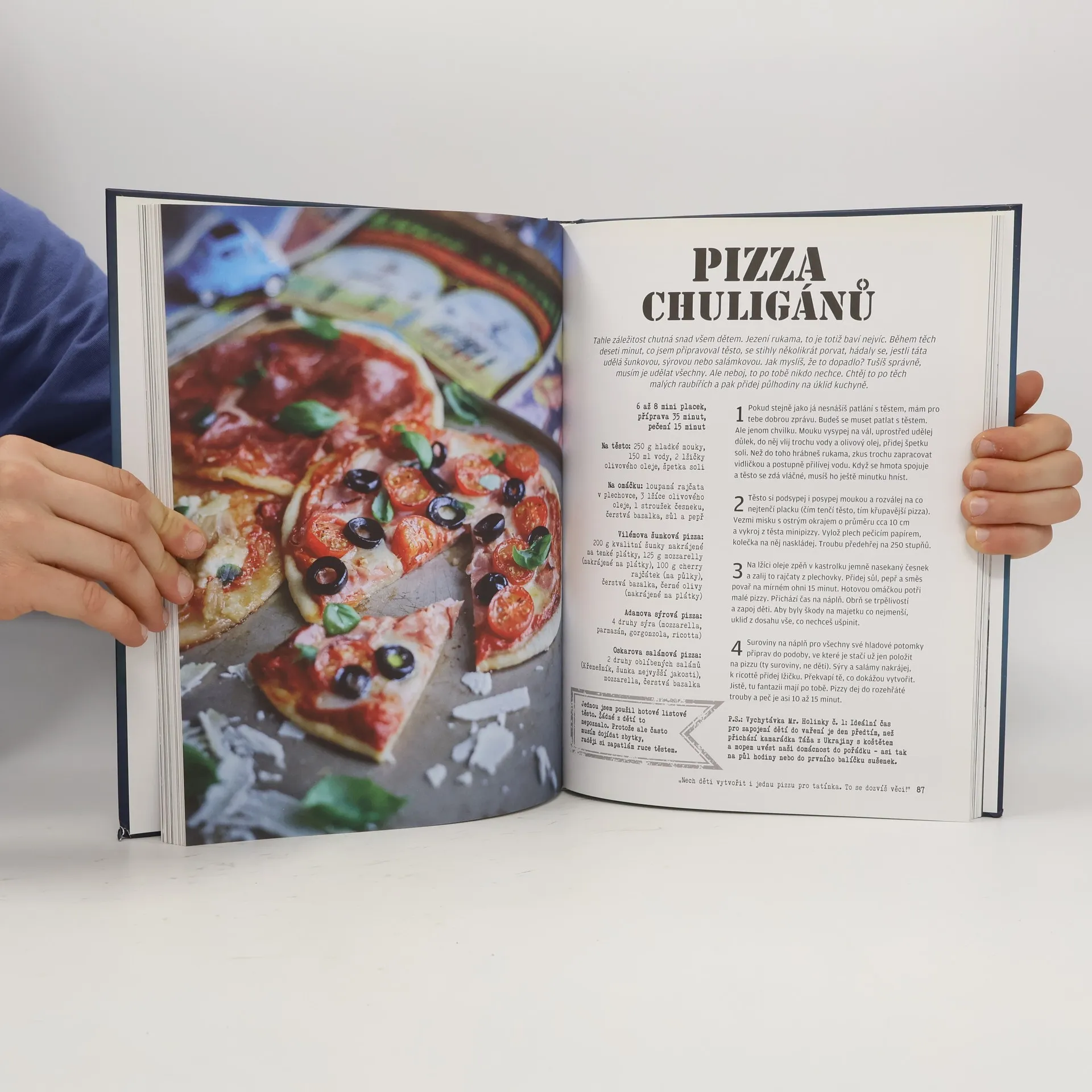 Uvařit, zabavit děcka a nezbláznit se! Od autora Deníku muže na mateřské Ondry Holinky Kuchařka pro tatínky je plná nadupany´ch receptů prověřeny´ch opravdovy´m tátou a kopou mlsny´ch maly´ch pus. Obsahuje nejen deset tematicky´ch kapitol, kdy táta vaří polívky, dělá svačinky i oblíbené omáčky a těstoviny, ale také zápisky z Ondrova deníku, v nichž se mimo jiné dozvíte, jak nepropadnout alkoholismu, jak vyřešit problém a nevyžírat pořád dokola ledničku a mnoho dalších zážitků z jeho šťastny´ch i zoufalejších dní. A kniha dá prostor pro vyjádření se i dalším tátům. Ondrovy recepty zaberou minimum času – jinak byste se z toho kolotoče ‚snídání, svačení, obědvání, žadonění, svačení, zase svačení, kňourání a večeření‘ nikdy nevymotali. Podrobně popsané postupy zvládne i táta nevařící a inspirací budou tomu v kuchyni zběhlému. By´t dobry´m tátou je šichta na plny´ úvazek a je celkem jedno, jestli jste táta pracující, nebo ten na rodičovské dovolené. Pojďte společně s Ondrou nakopat zavedeny´m regulím (nikoliv mámám) zadek třeba holinou a dokažte všem, ale především sobě, že jste skvěly´ táta a že klidně zvládnete ty´den bez volání po mamince!
