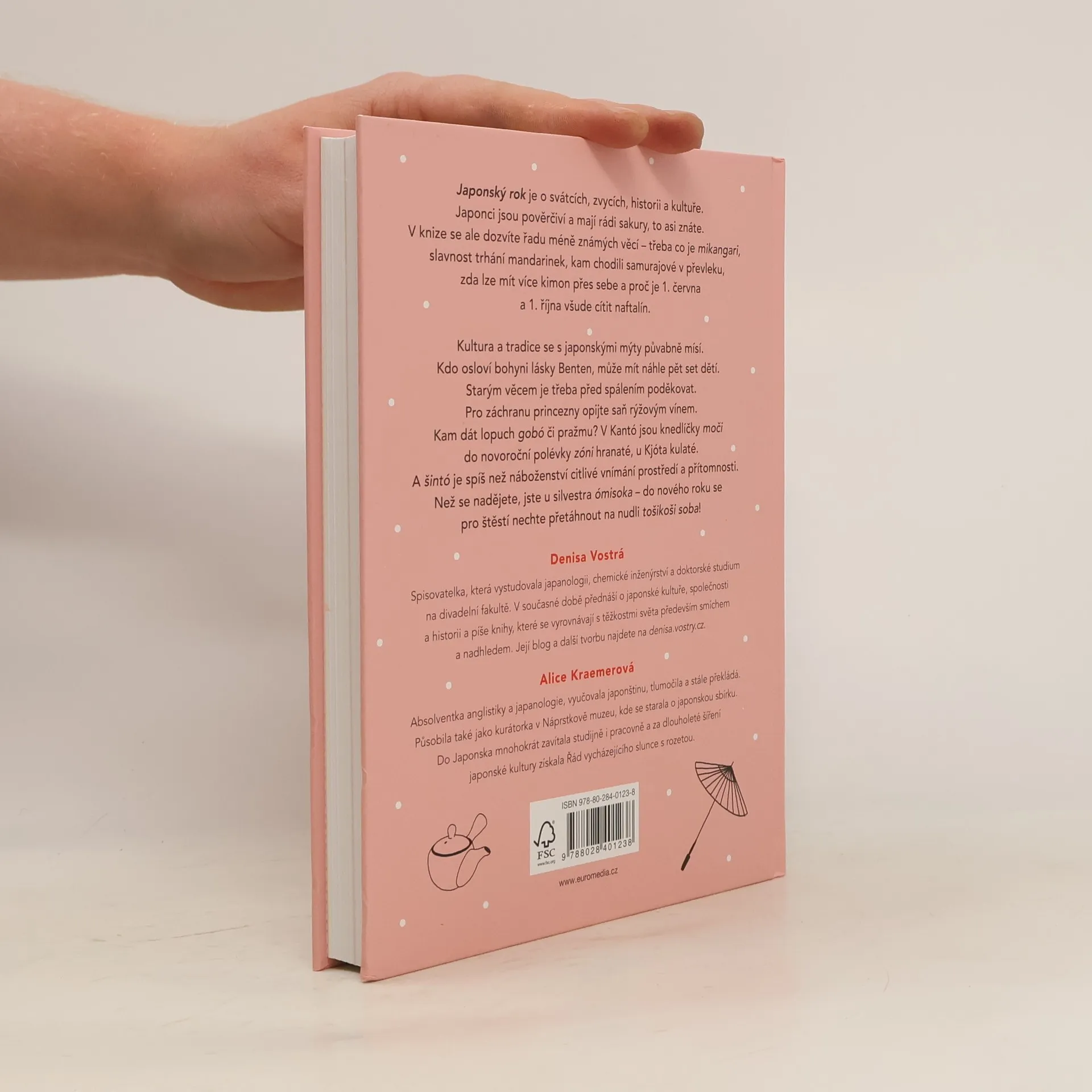 Japonský rok je o svátcích, zvycích, historii a kultuře. Japonci jsou pověrčiví a mají rádi sakury – to asi znáte. Ale co třeba mikangari, slavnost trhání mandarinek? Proč na ilustracích Příběhu prince Gendžiho chybí střechy? Kam chodili samurajové v převleku? Lze mít více kimon přes sebe? Proč je 1. června a 1. října všude cítit naftalín? Knihu otevřete kdekoli a začtete se. Kultura a tradice se s japonskými mýty a pověrami mísí půvabným způsobem. Kdo osloví bohyni lásky Benten, může mít náhle pět set dětí. Starým věcem je třeba před spálením poděkovat. Pro záchranu princezny opijte saň rýžovým vínem. Do čeho dát lopuch gobó a do čeho pražmu? Tu je recept na čáhan. V Kantó jsou knedlíčky moči do novoroční polévky zóni hranaté, u Kjóta kulaté. Nejkulatější bílé dango se hodí při cukimi, pozorování měsíce v úplňku. A šintó je spíš než náboženství citlivé vnímání prostředí a přítomnosti. Než se nadějete, jste s knihou u silvestra ómisoka – do nového roku se pro štěstí nechte přetáhnout na nudli tošikoši soba!