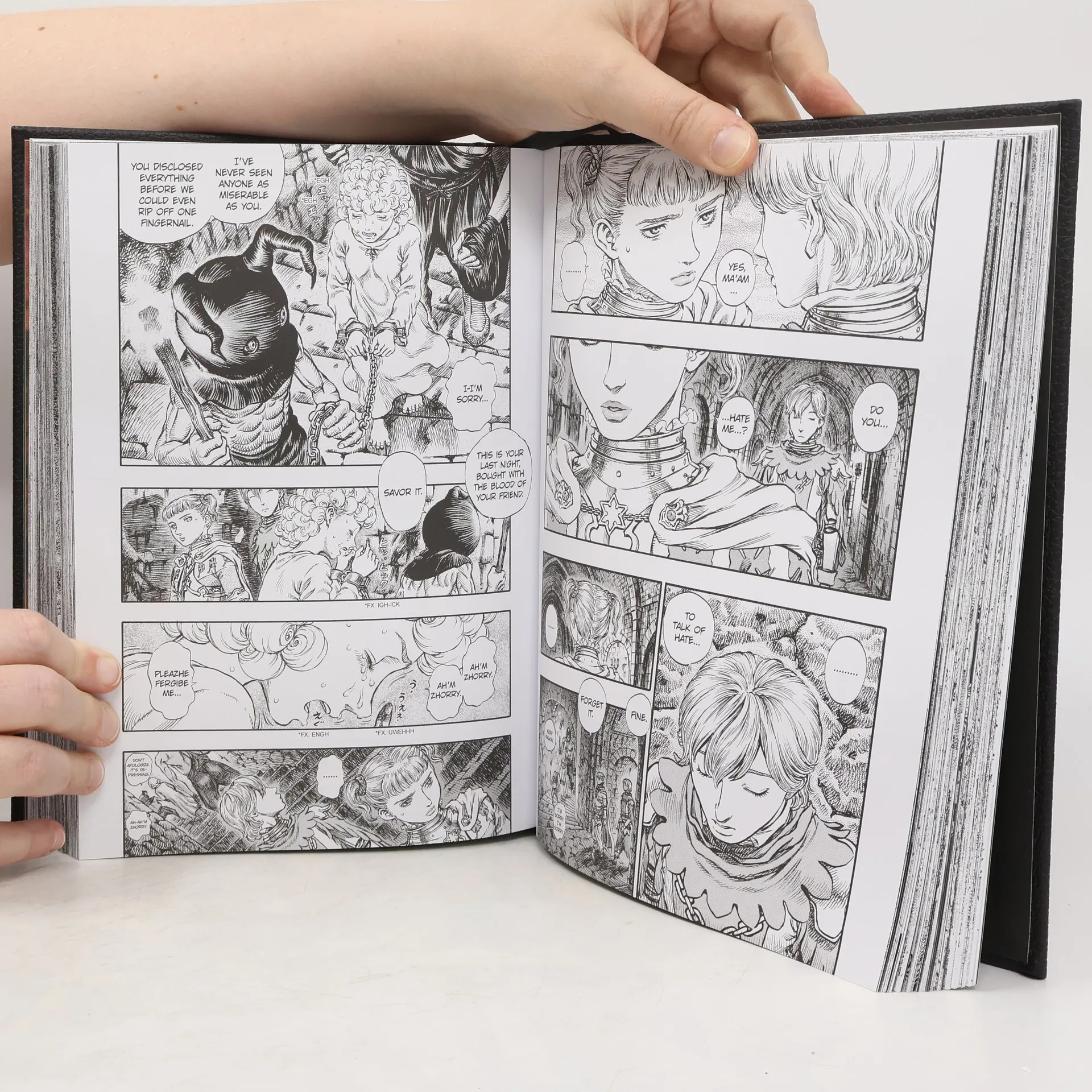 Kentaro Miura's legendary adult fantasy/horror manga is now available at its original published size in handsome deluxe hardcover editions, each collecting three volumes of the acclaimed series. Guts the Black Swordsman is on a rampage as Mogus, master inquisitor of the Holy See, readies Guts' beloved Casca to be burned at the stake as a heretic in the forbidding Tower of Conviction. But Casca's demonic Brand of Sacrifice is drawing hideous dark powers to the Tower, and even if Guts can defeat the mighty Mogus, can he save Casca from the ravenous hordes of Hell? Collects Berserk volumes 19-21. FOR MATURE READERS.