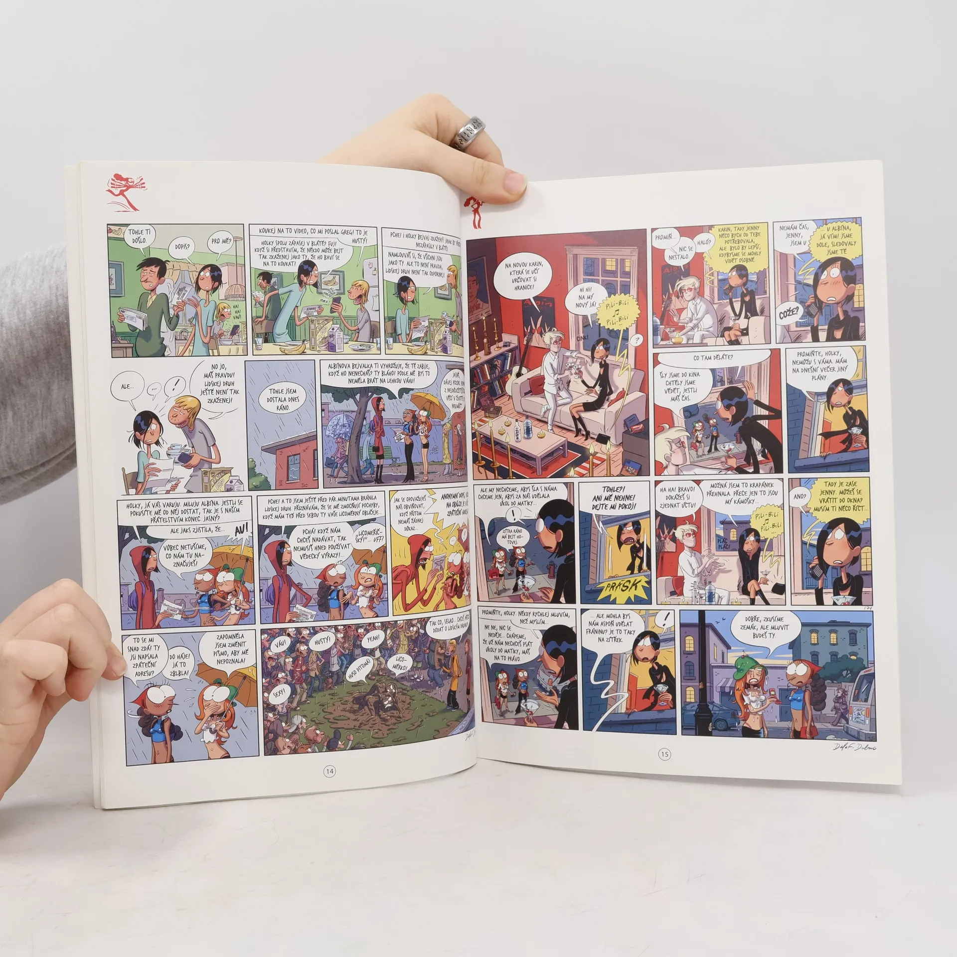 Originální názevJeden z nejprodávanějších francouzských komiksů posledních let a překvapení evropského trhu s komiksy vůbec líčí s nadsázkou příhody tří kamarádek. Jedna z nich je skoro jako princezna z pohádky s dobrým srdcem a nezáludnou povahou, zatímco druhé dvě se někdy chovají jako ty nejpodlejší čarodějnice. Pupíky číslo pět mají ďábelskou tvář a obsahem si s ní v ničem nezadají. Karin je jako vyměněná, jako by ji někdo přímo napumpoval sebevědomím. Ale je opravdu po boku Albína šťastná? Nechybí jí přece jen Dan? A kdo je vlastně Albín? Neskrývá nějaké kruté tajemství? A samozřejmě bez Jenny a Vicky by to nebyly Pupíky, hlavním cílem je zůstat nejkrásnější na škole a mít nějakou dobrou (rozuměj dostatečně naivní) duši, která jim bude posluhovat.