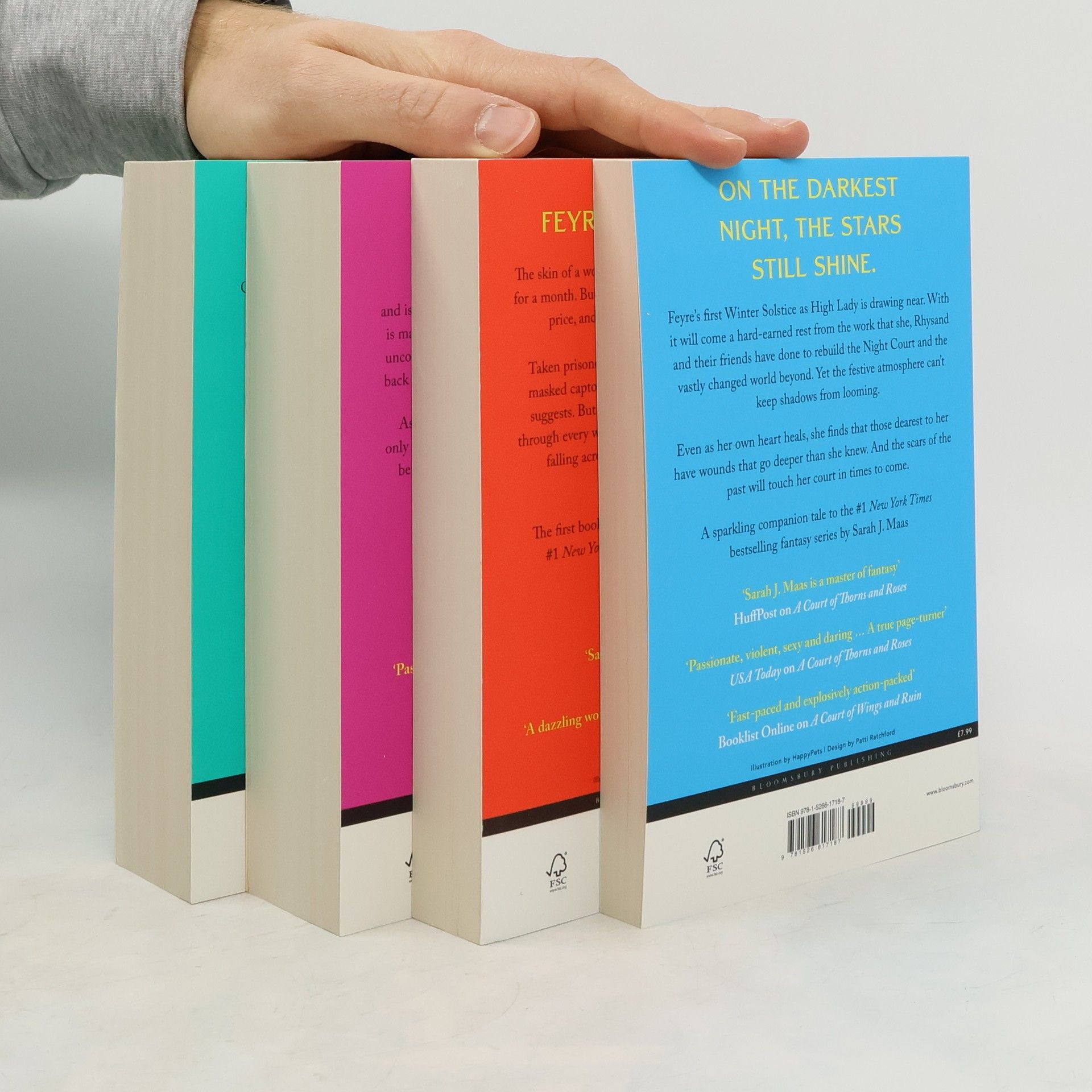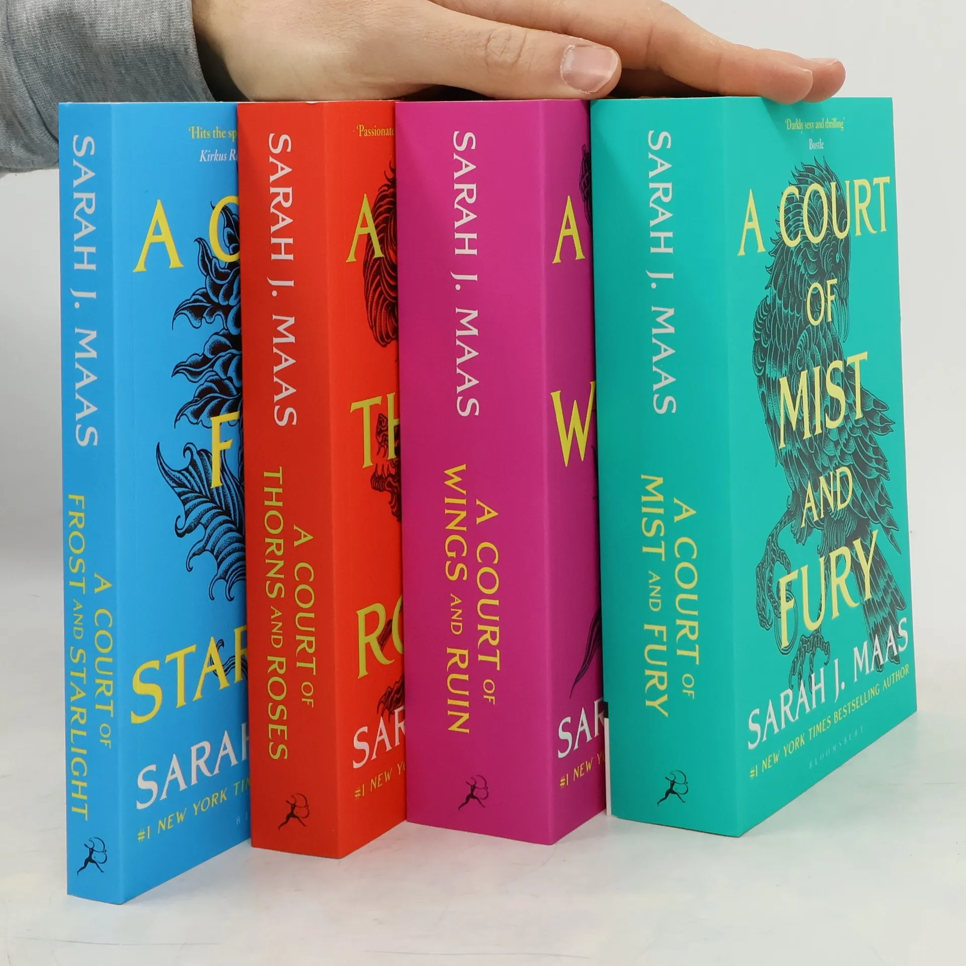 Passionate, violent, sexy and daring ... A true page-turner - USA TODAY on A Court of Thorns and Roses Feyre is a huntress. The skin of a wolf would bring enough gold to feed her sisters for a month. But the life of a magical creature comes at a steep price, and Feyre has just killed the wrong wolf ... Follow Feyre's journey into the dangerous, alluring world of the Fae, where she will lose her heart, face her demons, and learn what she is truly capable of. This stunning, four-book box set of the #1 New York Times bestselling series by Sarah J. Maas includes A Court of Thorns and Roses, A Court of Mist and Fury, A Court of Wings and Ruin, and the companion tale A Court of Frost and Starlight.