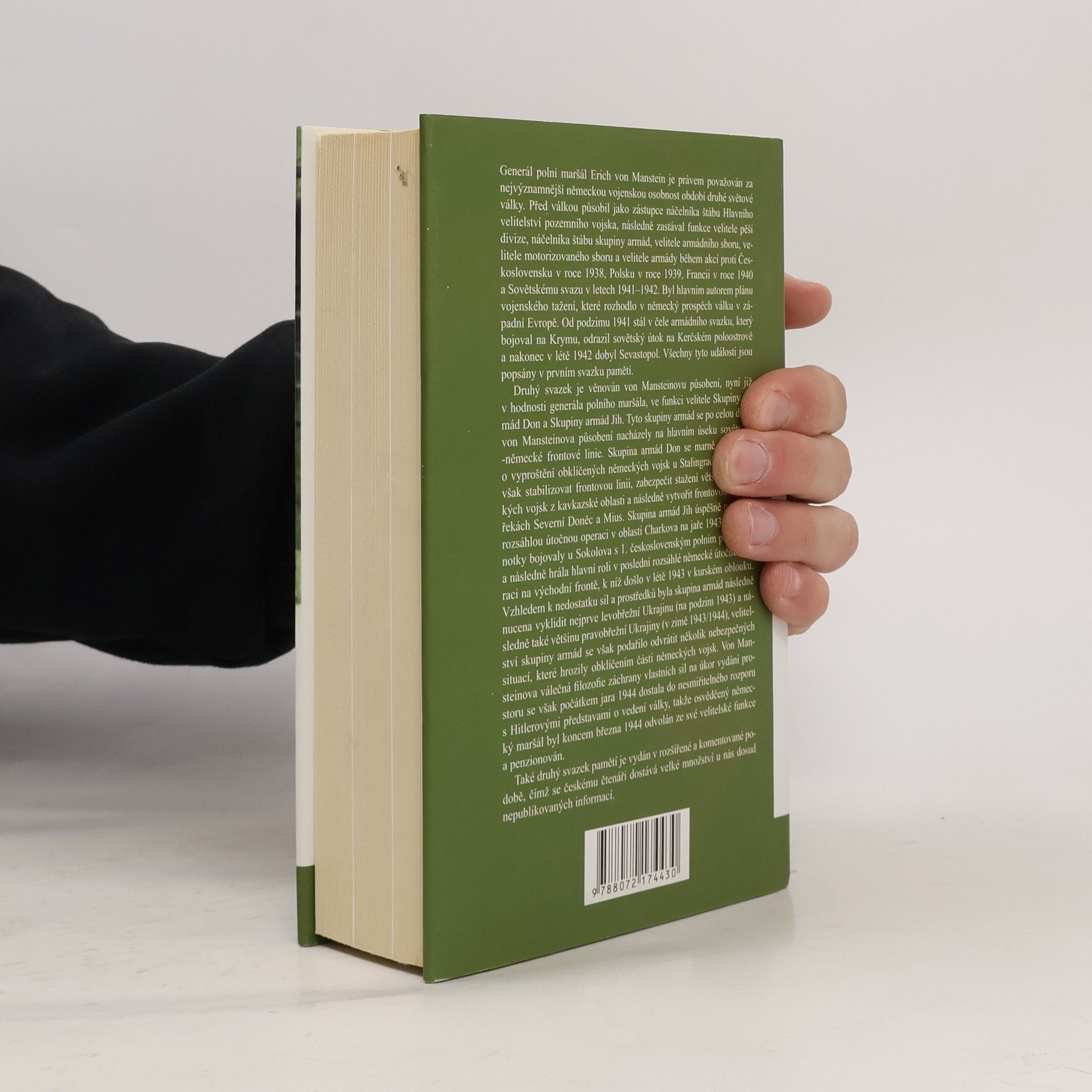 Jeden z nejvýznamnějších německých vojevůdců druhé světové války napsal své paměti v první polovině padesátých let minulého století. Jeho kniha se téměř okamžitě stala bestsellerem a byla přeložena do mnoha světových jazyků, včetně ruštiny. Nakladatelství Jota tímto překladem splácí určitý dluh, který může český čtenář, jenž neměl možnost se s tímto druhem literatury v minulosti seznámit, cítit. Vydání knihy rozhodně není propagací nacismu, tak jako vydávání pamětí sovětských maršálů není propagací komunismu. Přesto je kniha doplněna redakčním poznámkovým aparátem, který jednak čtenáře orientuje v záplavě dnes již méně známých osobností, událostí a vojenských reálií druhé světové války, jednak upozorňuje na případné pasáže, které lze označit jako subjektivní. Druhý díl pamětí generála Ericha von Mansteina zavede čtenáře na sovětsko-německou frontu a přiblíží mu organizaci německých vojsk za 2. světové války. Paměti velitele Skupiny Don a Skupiny armád Jih se tentokrát zaměřují na pokusy o vyproštění obklíčených německých vojsk u Stalingradu a o poslední rozsáhlé německé útočné operaci v létě 1943. Začátkem roku 1944 byl generál von Manstein Hitlerem odvolán. Součástí knihy jsou seznamy velitelských sborů německých vojsk a fotografie.