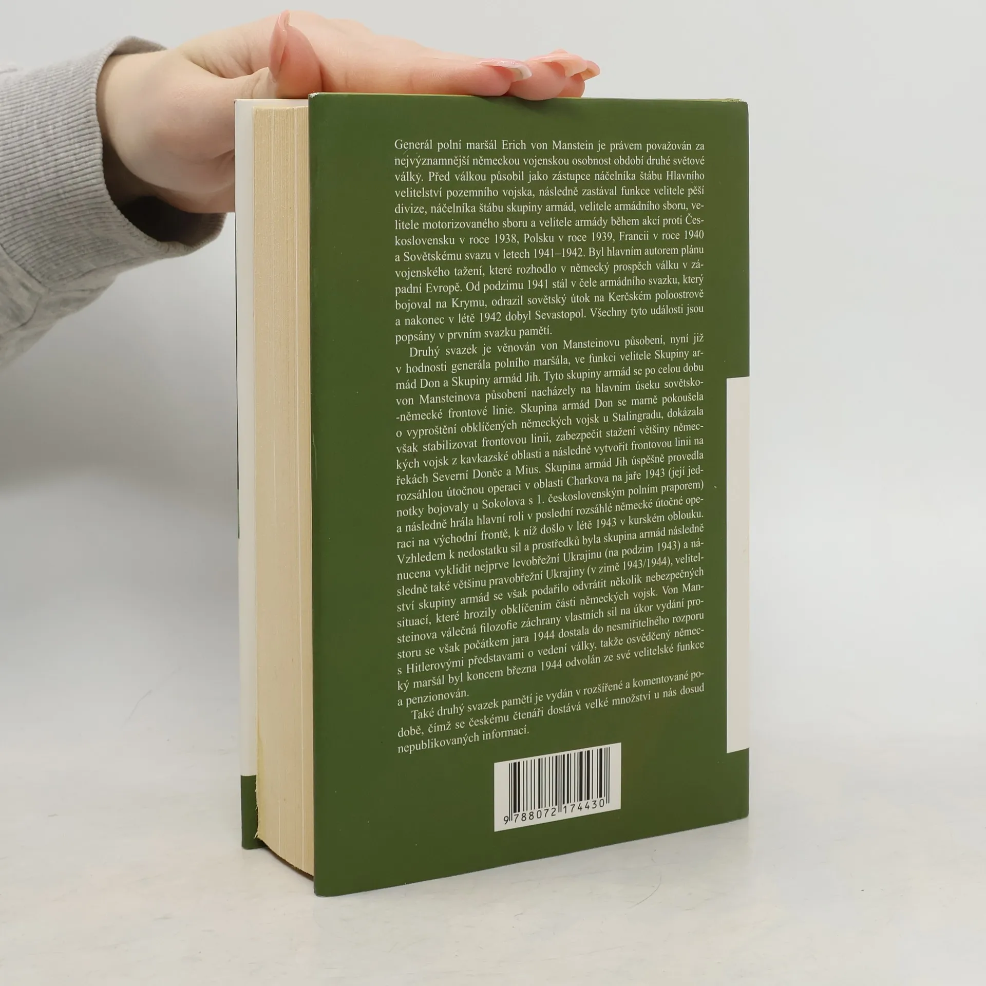 Jeden z nejvýznamnějších německých vojevůdců druhé světové války napsal své paměti v první polovině padesátých let minulého století. Jeho kniha se téměř okamžitě stala bestsellerem a byla přeložena do mnoha světových jazyků, včetně ruštiny. Nakladatelství Jota tímto překladem splácí určitý dluh, který může český čtenář, jenž neměl možnost se s tímto druhem literatury v minulosti seznámit, cítit. Vydání knihy rozhodně není propagací nacismu, tak jako vydávání pamětí sovětských maršálů není propagací komunismu. Přesto je kniha doplněna redakčním poznámkovým aparátem, který jednak čtenáře orientuje v záplavě dnes již méně známých osobností, událostí a vojenských reálií druhé světové války, jednak upozorňuje na případné pasáže, které lze označit jako subjektivní. Druhý díl pamětí generála Ericha von Mansteina zavede čtenáře na sovětsko-německou frontu a přiblíží mu organizaci německých vojsk za 2. světové války. Paměti velitele Skupiny Don a Skupiny armád Jih se tentokrát zaměřují na pokusy o vyproštění obklíčených německých vojsk u Stalingradu a o poslední rozsáhlé německé útočné operaci v létě 1943. Začátkem roku 1944 byl generál von Manstein Hitlerem odvolán. Součástí knihy jsou seznamy velitelských sborů německých vojsk a fotografie.