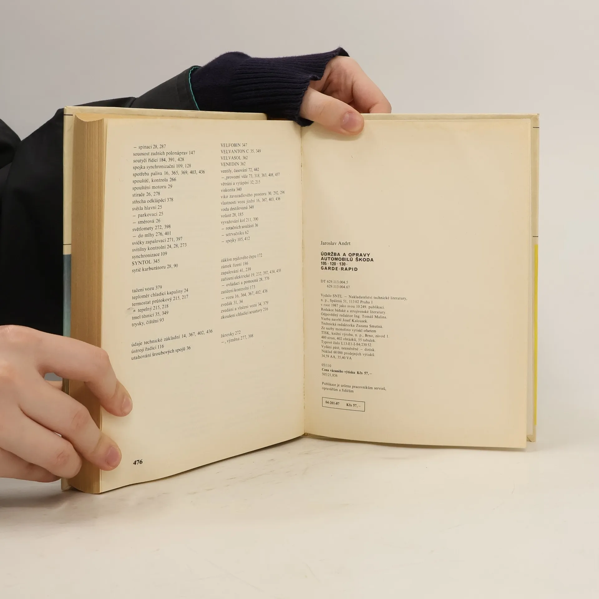 Publikace popisuje podrobný postup všech údržbářských a opravářských prací na osobních automobilech Škoda 105 S, 105 L, 105 GL, 105 SP, 120, 120 L, 120 LE, 120 GL, 120 LS, 120 LX, 120 GLS, 130 L, GARDE, RAPID, RAPID 130 v rozsahu běžných a středních oprav. Při popisu jednotlivých prací je uvedena demontáž, oprava, montáž a seřízení vč. nářadí a přípravků.