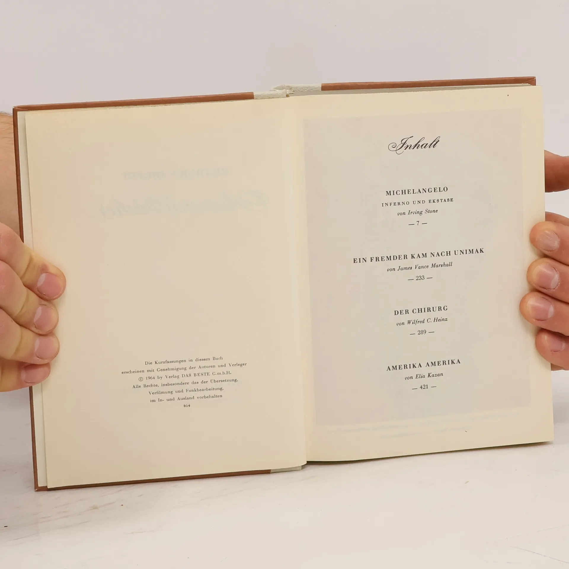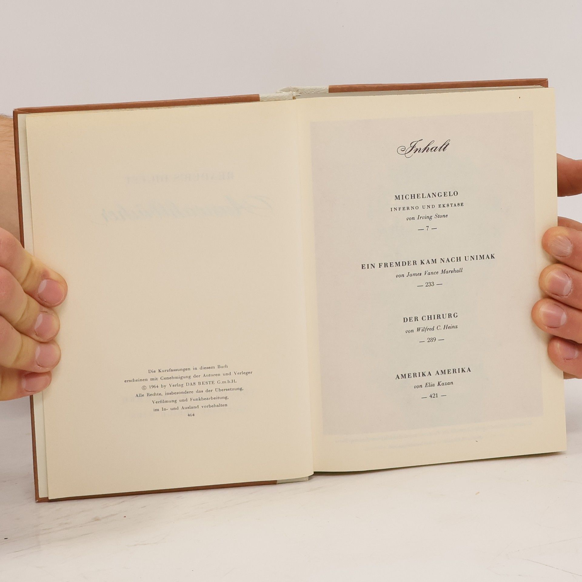 Reader's Digest Auswahlbücher. Michelangelo. Ein Fremder kam nach Unimak. Der Chirurg. Amerika Amerika, Irving Stone, Ian Cameron, Elia Kazan, Wilfred C. Heinz