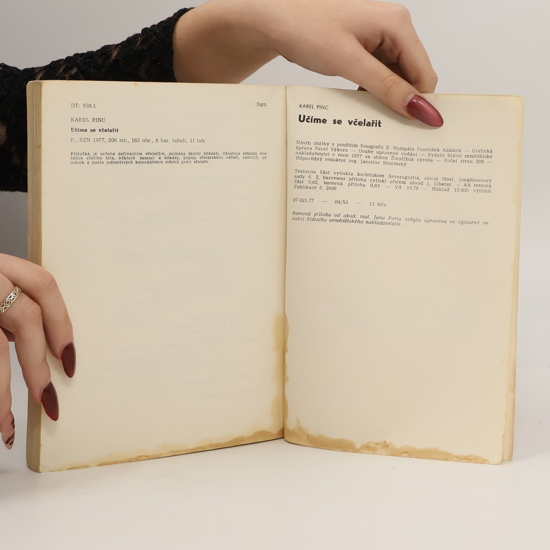 Příručka je určena začínajícím včelařům, zejména školní mládeži. Obsahuje základy anatomie včelího těla, některé nemoci a nákazy, popisy včelařského nářadí, nástrojů, pomůcek a práci včelaře podle jednotlivých kalendářních měsíců. 208 stran, 11 tabulek, 162 obrázků, 8barevných tabulí. Vydání třetí.