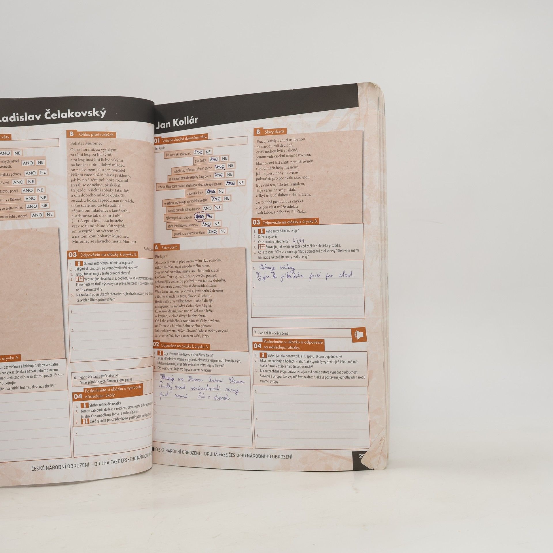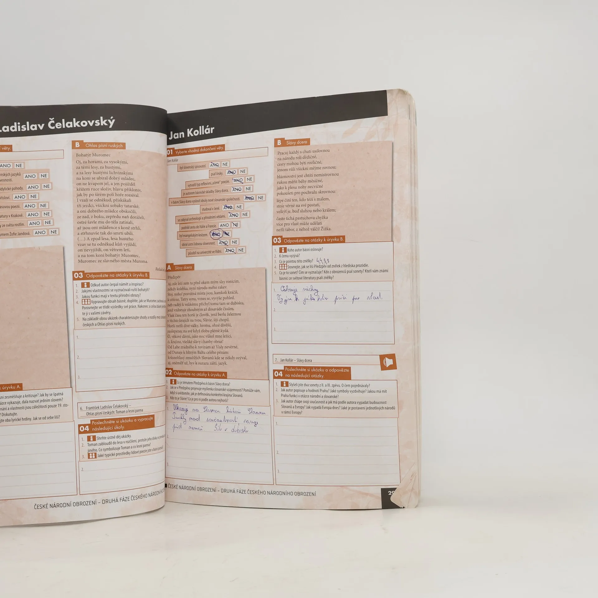 Pracovní sešit tvoří kompaktní celek s učebnicí, neboť prostřednictvím práce s literárním textem prohlubuje znalosti o vývoji literární tvorby v daném období. Kopíruje strukturu učebnice, což usnadňuje jeho použití.