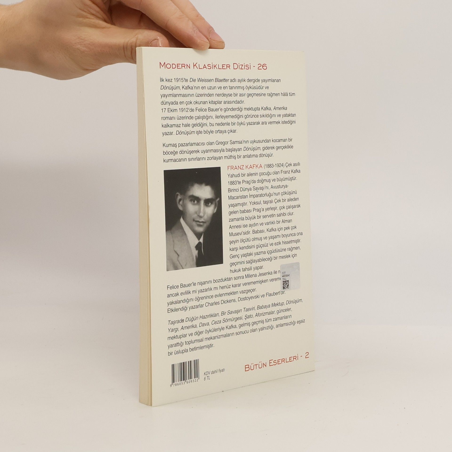 İlk kez 1915'te "Die Weissen Blaetter" adlı aylık dergide yayımlanan Dönüşüm, Kafka'nın en uzun ve en tanınmış öyküsüdür ve yayımlanmasının üzerinden nerdeyse bir asır geçmesine rağmen hâlâ tüm dünyada en çok okunan kitaplar arasındadır. 17 Ekim 1912'de Felice Bauer'e gönderdiği mektupta Kafka Amerika romanı üzerinde çalıştığını, ilerleyemediğini görünce sıkıldığını ve yataktan kalkamaz hale geldiğini, bu nedenle bir öykü yazarak ara vermek istediğini yazar. Dönüşüm işte böyle ortaya çıkar. Kumaş pazarlamacısı olan Gregor Samsa'nın uykusundan kocaman bir böceğe dönüşerek uyanmasıyla başlayan Dönüşüm, giderek gerçeklikle kurmacanın sınırlarını zorlayan müthiş bir anlatıma dönüşür.