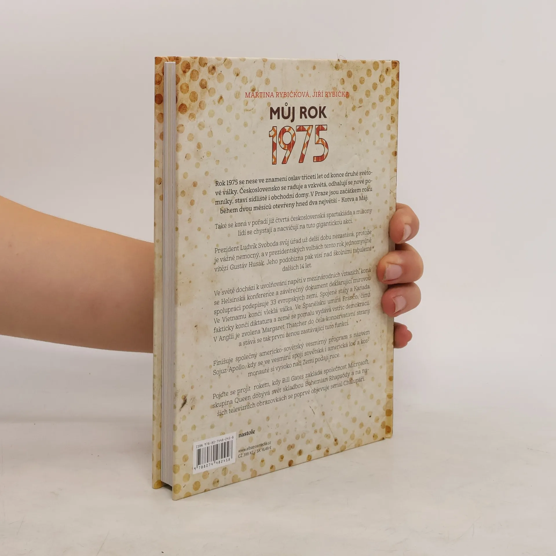 Rok 1975 se nese ve znamení oslav třiceti let od konce druhé světové války. Československo se raduje a vzkvétá, odhalují se nové pomníky, staví sídliště i obchodní domy. V Praze se začátkem roku otevírají dva největší – Kotva a Máj. Ve Vietnamu končí vleklá válka, ve Španělsku umírá Franco a v Anglii je zvolena Margaret Thatcherová do čela konzervativní strany. Projděte se rokem, kdy Bill Gates zakládá společnost Microsoft a skupina Queen dobývá svět skladbou Bohemian Rhapsody.