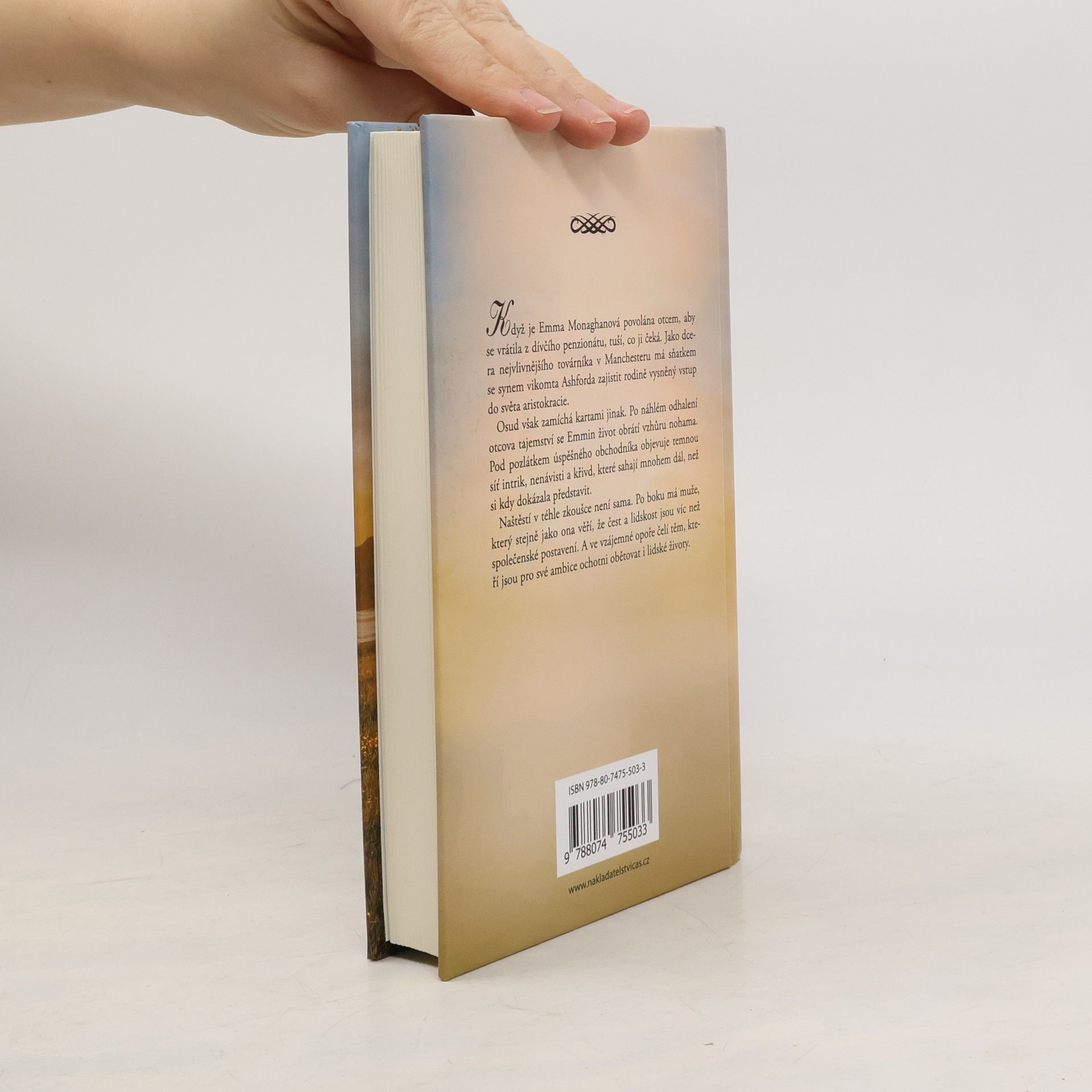 Když je Emma Monaghanová povolána otcem, aby se vrátila z dívčího penzionátu, tuší, co ji čeká. Jako dcera nejvlivnějšího továrníka v Manchesteru má sňatkem se synem vikomta Ashforda zajistit rodině vysněný vstup do světa aristokracie. Osud však zamíchá kartami jinak. Po náhlém odhalení otcova tajemství se Emmin život obrátí vzhůru nohama. Pod pozlátkem úspěšného obchodníka objevuje temnou síť intrik, nenávisti a křivd, které sahají mnohem dál, než si kdy dokázala představit. Naštěstí v téhle zkoušce není sama. Po boku má muže, který stejně jako ona věří, že čest a lidskost jsou víc než společenské postavení. A ve vzájemné opoře čelí těm, kteří jsou pro své ambice ochotni obětovat i lidské životy.