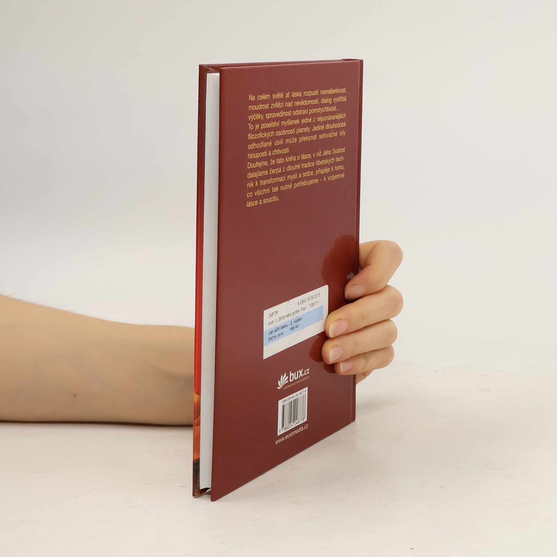 Tato kniha o nezbytné lásce, v níž Jeho Svatost dalajlama čerpá z dlouhé tradice tibetských technik k transformaci mysli a srdce, nepochybně přispěje k tomu, co všichni nutně potřebujeme – ke vzrůstu vzájemné soucitnosti. Je žádoucí, aby na celém světě láska rozpustila nesnášenlivost, moudrost zvítězila nad nevědomostí, koordinovaný aktivismus nahradil pasivitu zoufalství, dialog vystřídal vyčítání a spravedlnost odstranila pomstychtivost...
