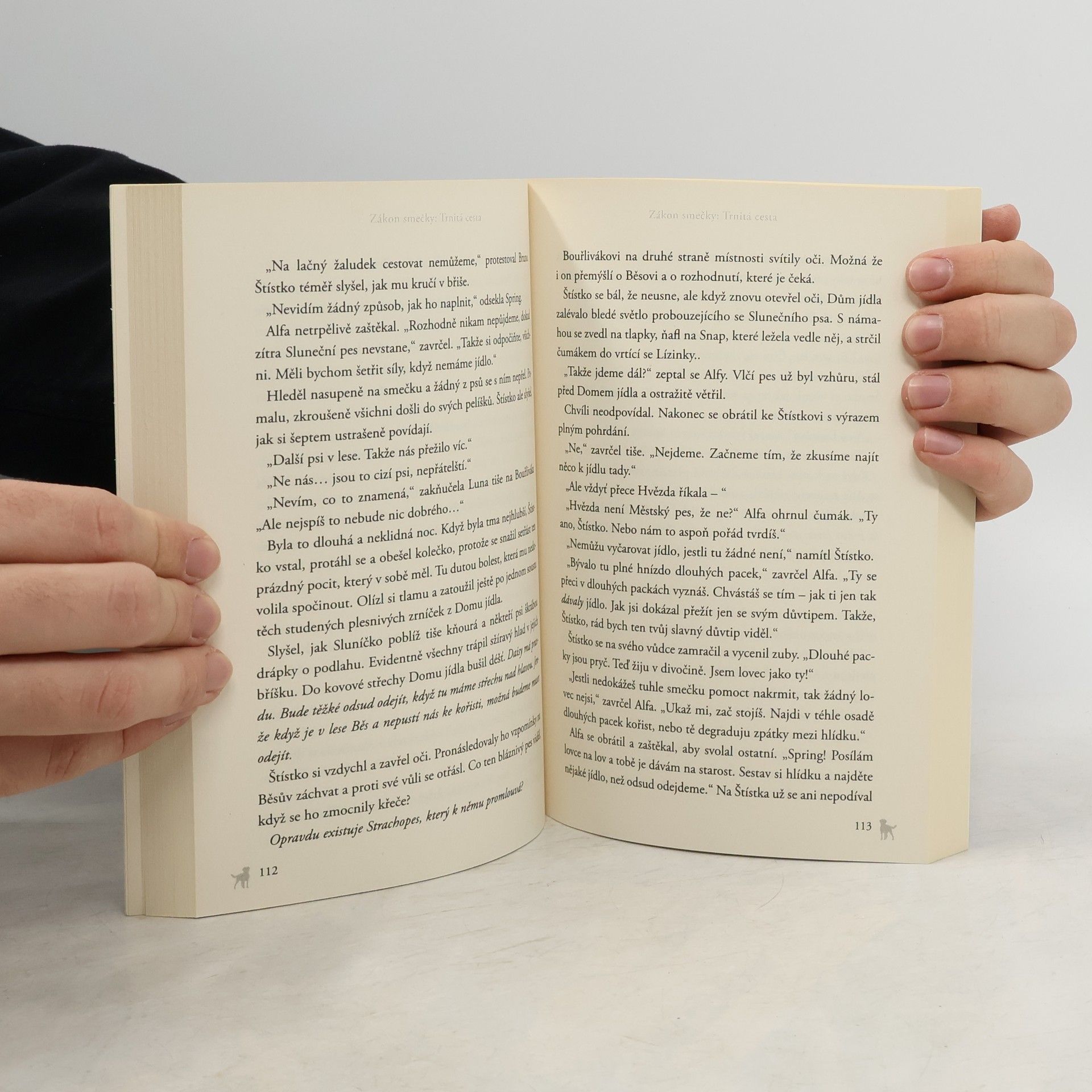 Čtvrtý díl oblíbené fantasy série o psech. Hlavní hrdina Štístko a vůdce smečky Alfa nyní žijí v křehkém příměří, ale napětí mezi nimi vzrůstá. Nově vzniklá smečka spojená z divokých a vodítkových psů musí založit tábor, který bude dostatečně vzdálený od krvelačných hlídacích psů. Když po dlouhém putování smečka konečně nalezne vhodné místo, čeká ji nepříjemné překvapení. Na lovu se setká s další tlupou! Dokáže Alfa ochránit všechny podřízené psy, nebo se skupina rozdělí?