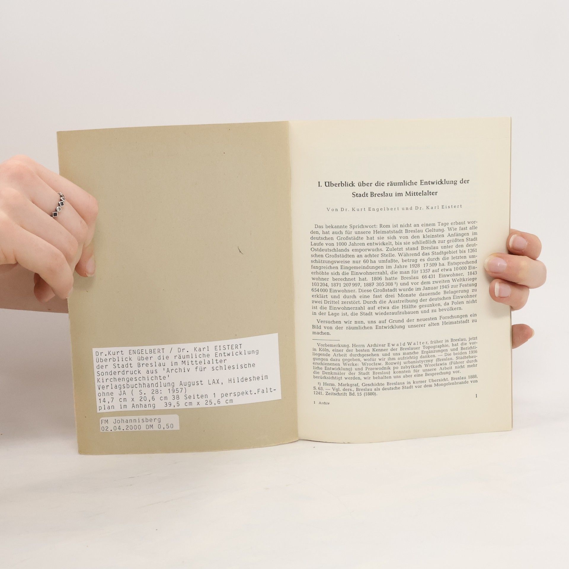 Überblick über die räumliche Entwicklung der Stadt Breslau im Mittelalter, Kurt Engelbert, Karl Eistert