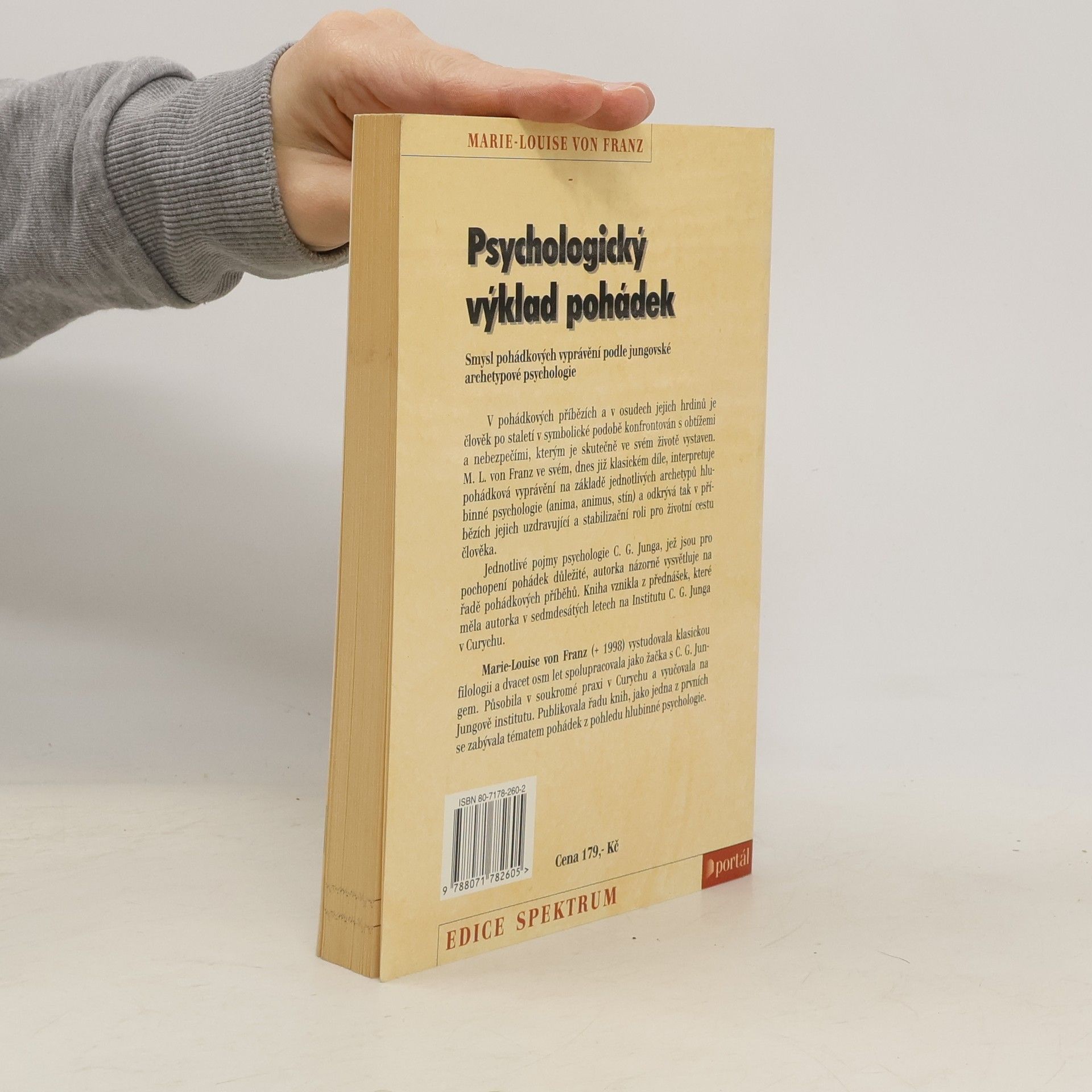 Psychologický výklad pohádek : smysl pohádkových vyprávění podle jungovské archetypové psychologie. Žačka C. G. Junga interpretuje pohádková vyprávění na základě jednotlivých archetypů hlubinné psychologie. V pohádkových příbězích a v osudech jejich hrdinů je člověk po staletí v symbolické podobě konfrontován s obtížemi a nebezpečími, kterým je sám v životě vystaven. M. L. von Franz ve svém, dnes již klasickém díle, interpretuje pohádková vyprávění na základě jednotlivých archetypů hlubinné psychologie a odkrývá tak v příbězích jejich uzdravující a stabilizační roli pro životní cestu člověka. Jednotlivé pojmy psychologie C. G. Junga, jež jsou pro pochopení pohádek důležité, jsou názorně vysvětleny na řadě pohádkových příběhů. Kniha vznikla z přednášek, které měla autorka v sedmdesátých letech na Institutu C. G. Junga v Curychu. 1. vydání