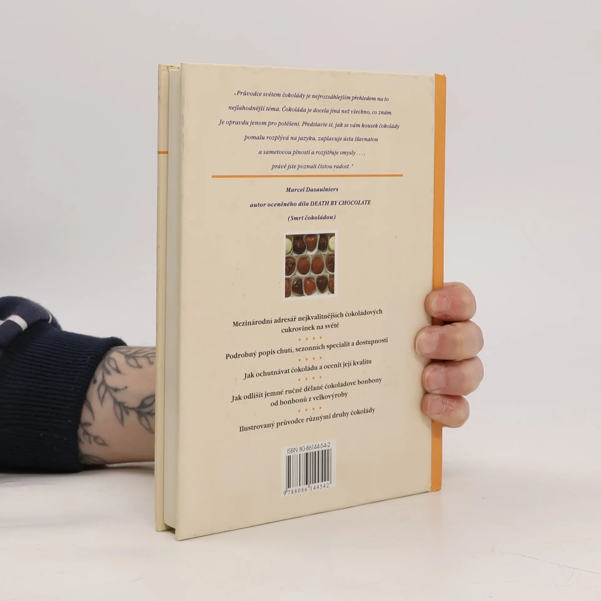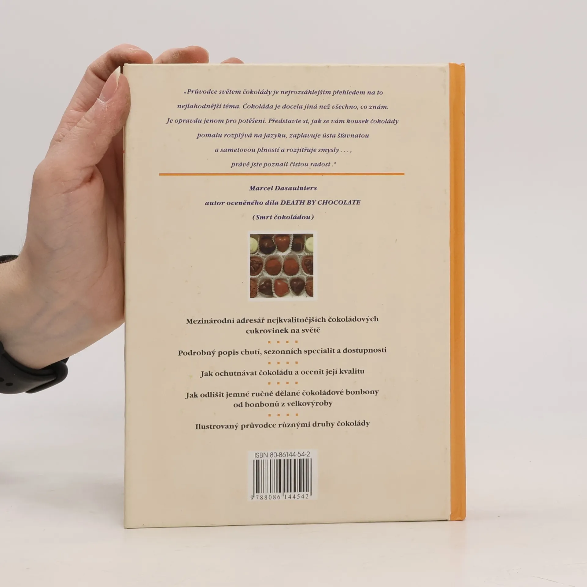 Průvodce znalce světem nejjemnějších čokoládových cukrovinek. "Průvodce světem čokolády je nejrozsáhlejším přehledem na to nejlahodnější téma. Čokoláda je docela jiná než všechno, co znám. Je opravdu jenom pro potěšení. Představte si, jak se vám kousek čokolády pomalu rozplývá na jazyku, zaplavuje ústa šťavnatou a sametovou plností a rozjitřuje smysly..., právě jste poznali čistou radost." Marcel Dasaulniers, autor Death by chocolate (Smrt čokoládou)