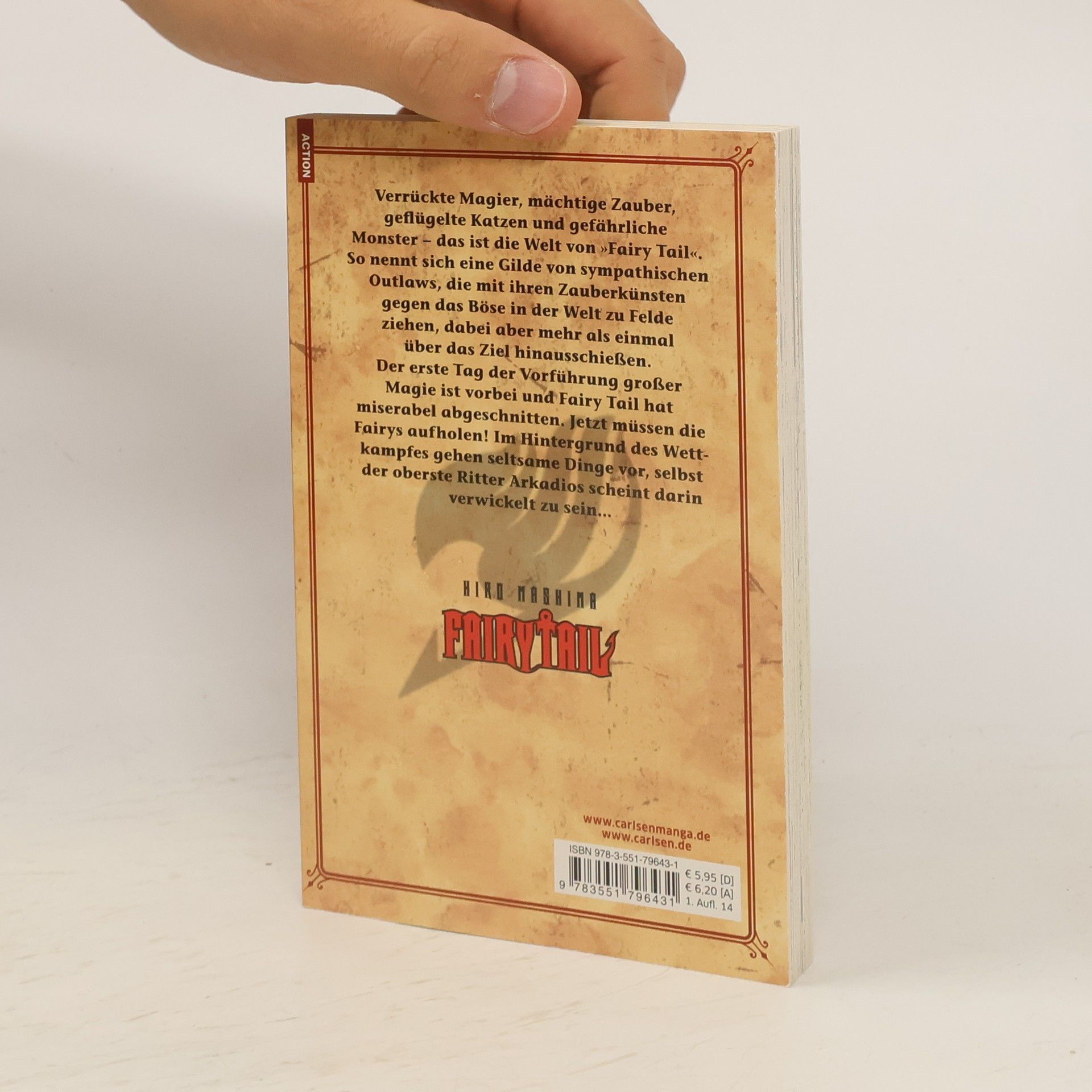 FAIRY TAIL ist der Mega-Erfolgsmanga aus Japan, in dem die Magier rund um Natsu und Co. beweisen, dass Freundschaft und Familie unbesiegbar sind. Der erste Tag der Vorführung großer Magie ist vorbei und Fairy Tail hat miserabel abgeschnitten. Jetzt müssen die Fairys aufholen! Im Hintergrund des Wettkampfes gehen seltsame Dinge vor, selbst der oberste Ritter Arkadios scheint darin verwickelt zu sein… Legendäre Fantasy-Action mit packenden Entwicklungen und unerwarteten Wendungen! Weitere Informationen: - Empfohlen ab 12 Jahren - Abgeschlossen in 63 Bänden - Anime-Stream u. a. auf Anime on Demand - Anime-DVD/Blu-ray von KAZÉ Anime - Artbook und Guidebook zur Manga-Serie - Fantastische Spin-off-Manga, u. a. über die Lieblingscharaktere der Serie