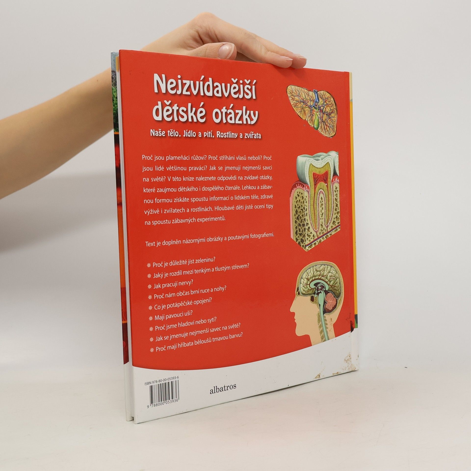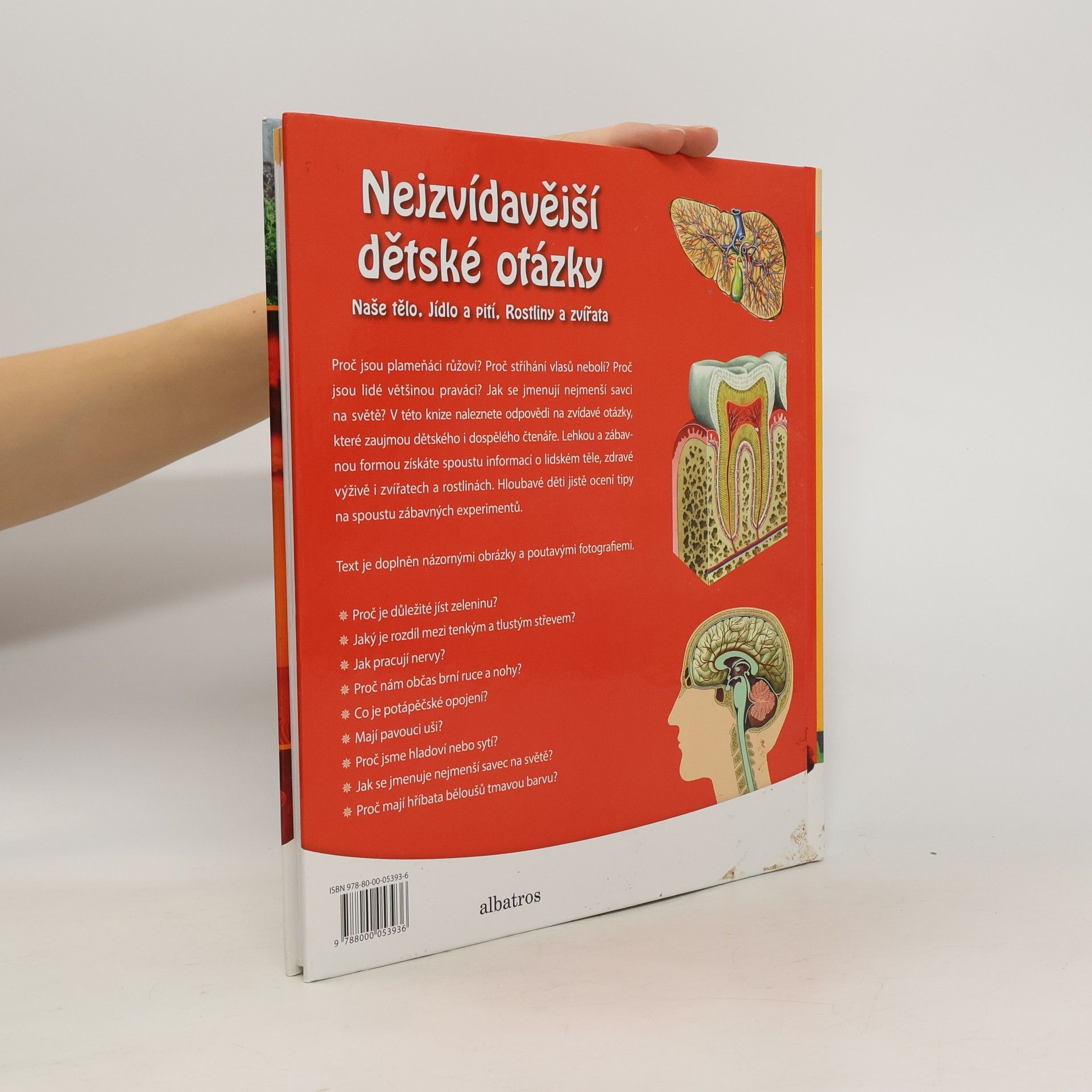 Proč jsou plameňáci růžoví? Proč stříhání vlasů nebolí? Proč jsou lidé většinou praváci? Jak se jmenují nejmenší savci na světě? V této knize naleznete odpovědi na zvídavé otázky, které zaujmou dětského i dospělého čtenáře. Lehkou a zábavnou formou získáte spoustu informací o lidském těle, zdravé výživě a zvířatech a rostlinách. Děti jistě ocení i tipy na spoustu zábavných experimentů