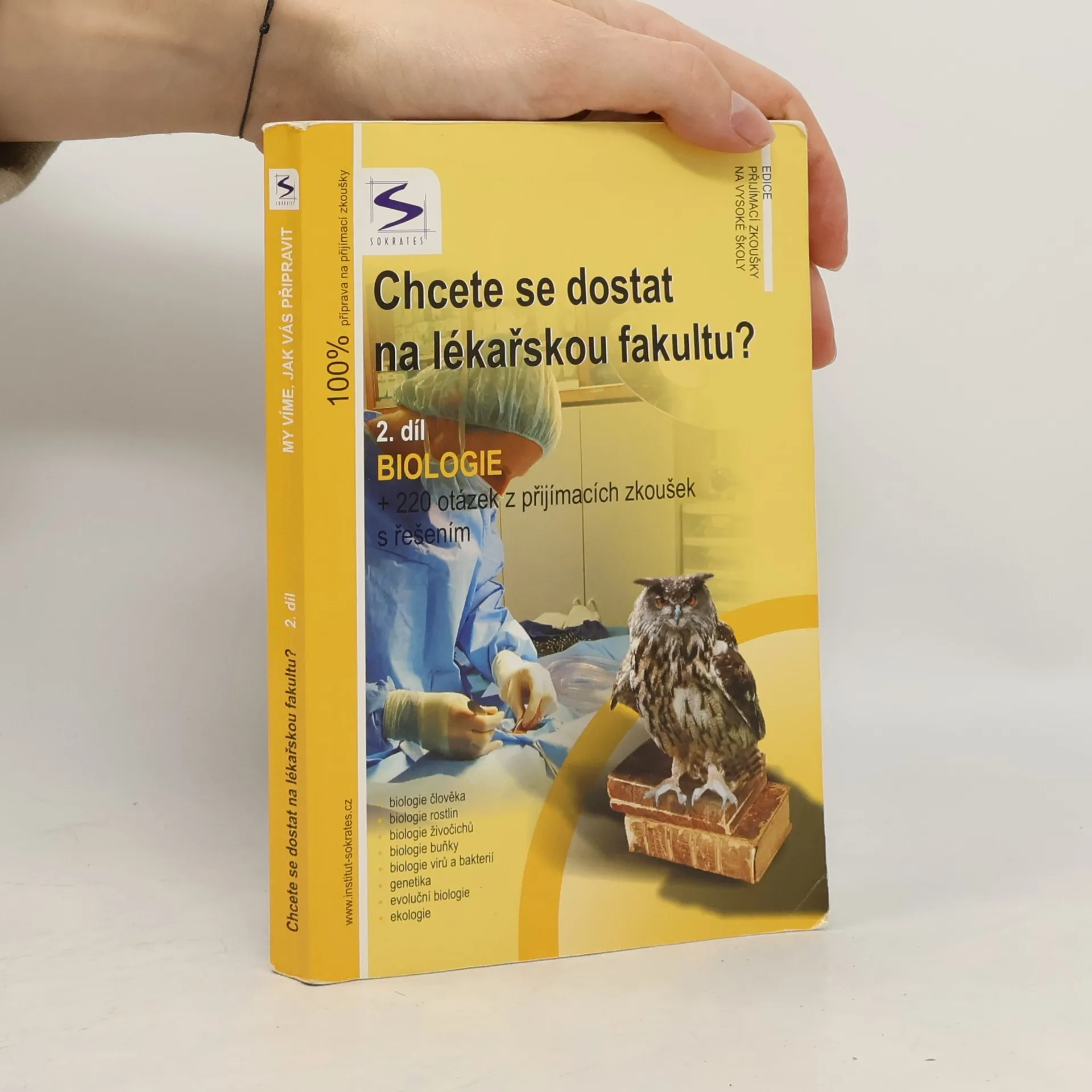 Kniha je jedinečnou pomůckou určenou uchazečům o studium na lékařských fakultách, obsahuje teoretické shrnutí problematiky + 220 testových otázek z minulých přijímacích zkoušek s řešením, a to z biologie. Je určena pro adepty na lékařskou fakultu UK v Praze, Lékařskou fakultu MU v Brně, Lékařskou fakultu UP v Olomouci, Veterinární a farmaceutickou univerzitu Brno a ostatní VŠ tohoto směru. ktuální pro rok 2007!!! Publikaci je vhodné zkombinovat s vysvětlením problematiky v dalších dílech.